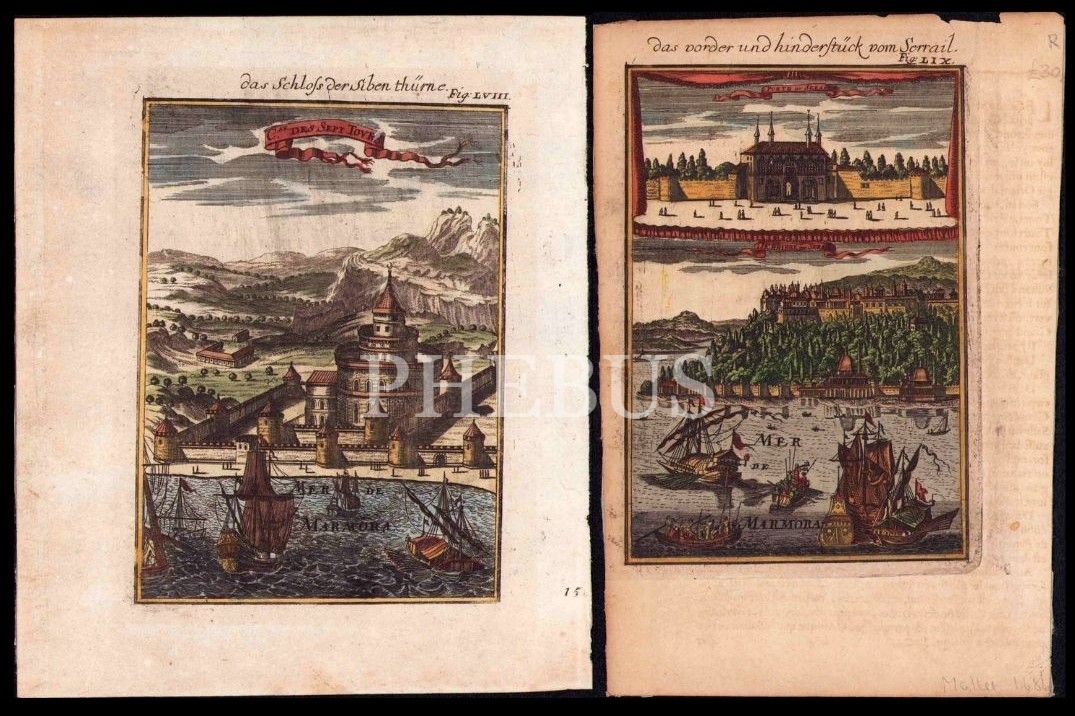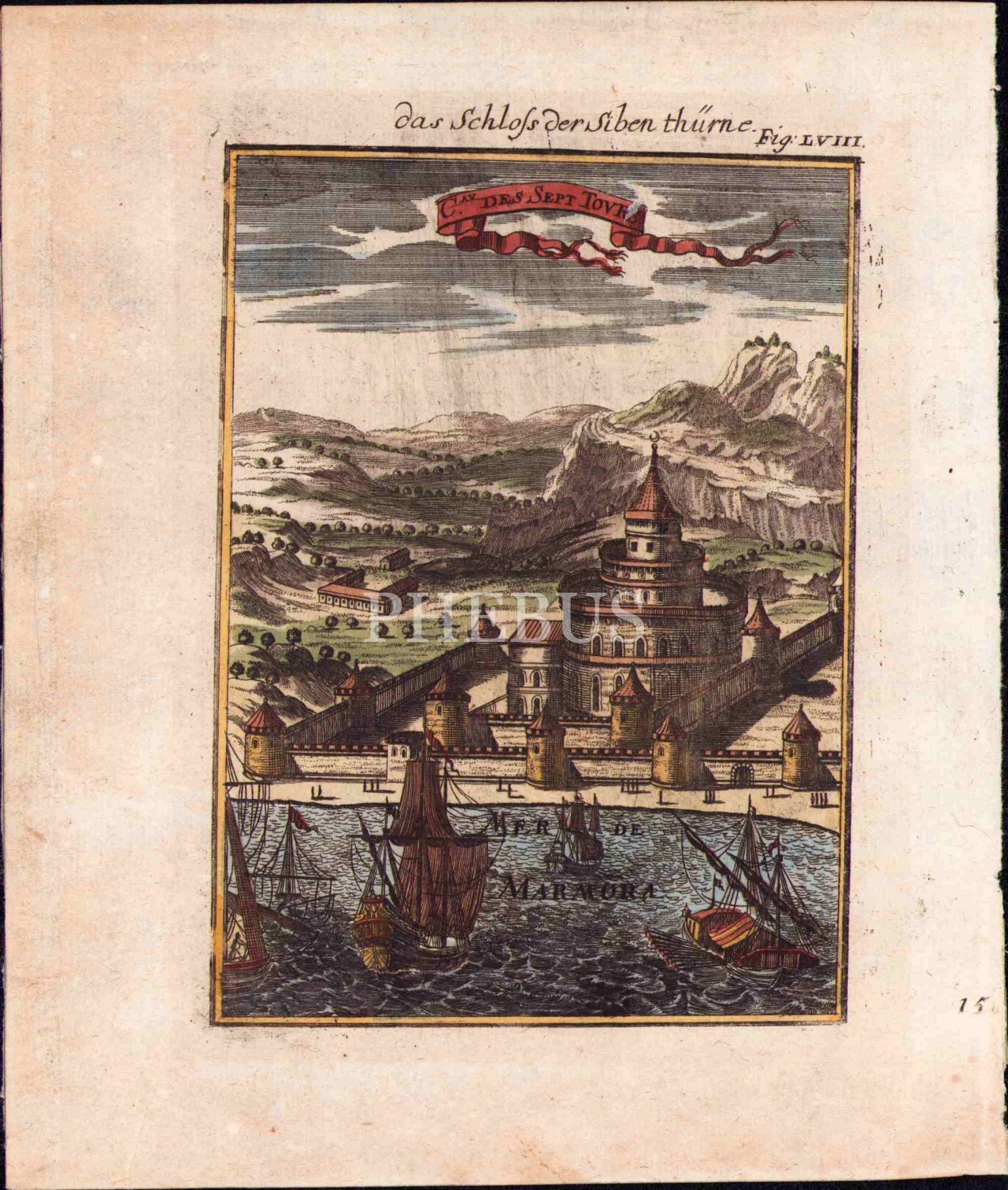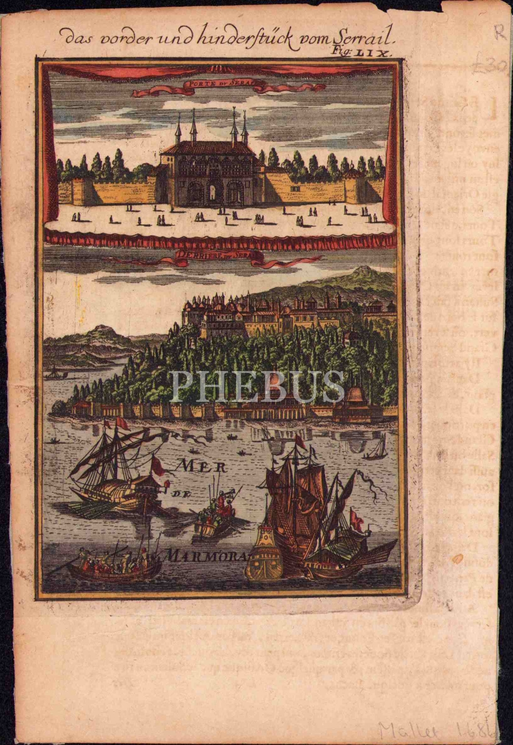 Marmara Denizi'nden Topkapı Sarayı Gravür, Mallet, 1681 tarihli, gravür 10x14 cm