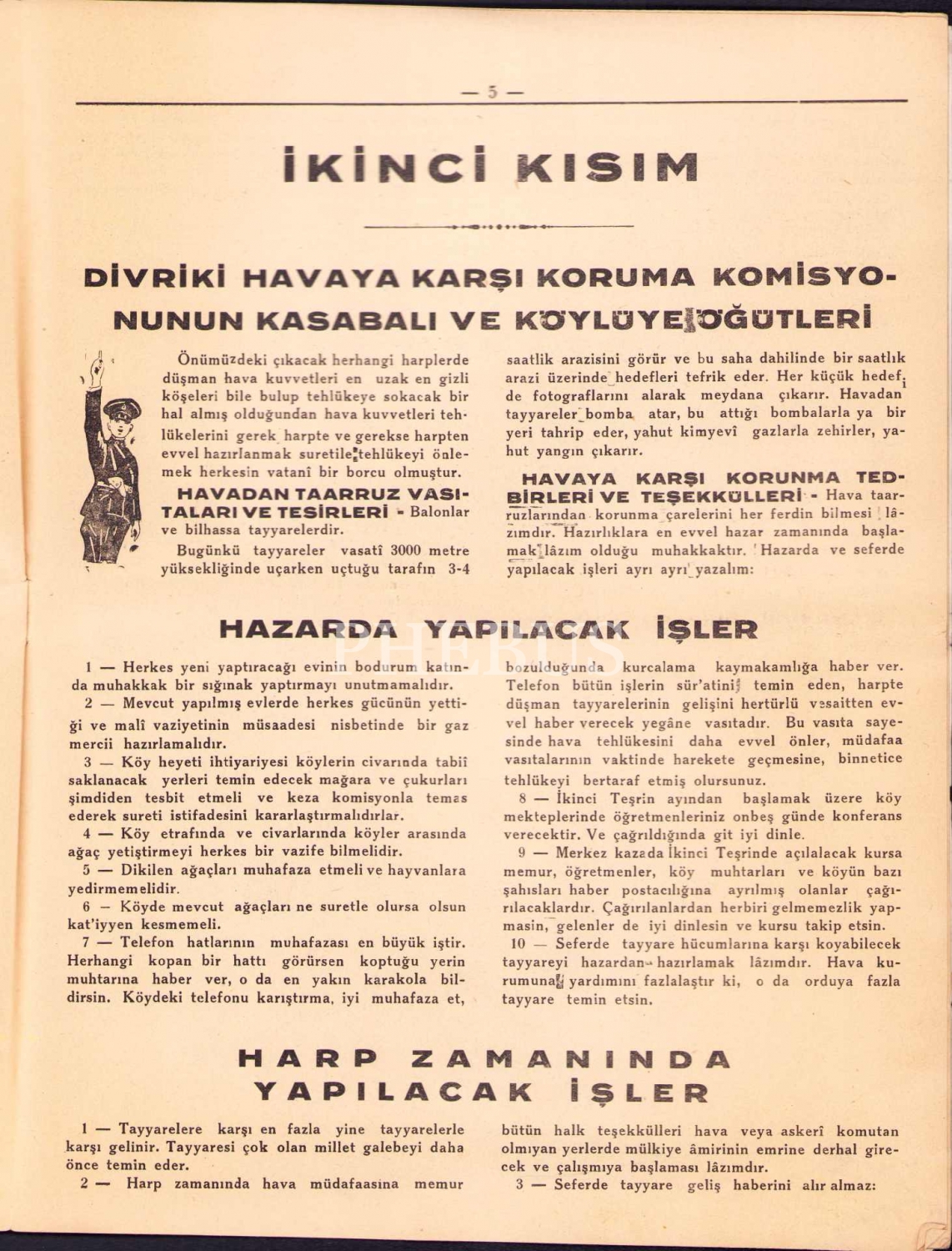 Hava Tehlikesi Hakkında Öğütler, Divriği Havaya Karşı Koruma Komisyonu, 1937 tarihli, 15 sayfa, 23x30 cm