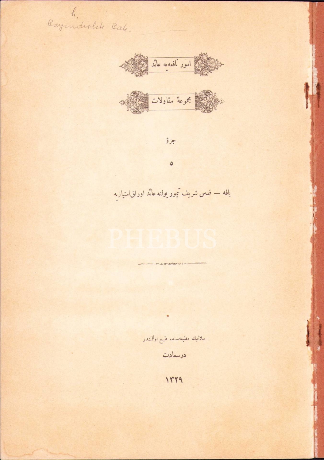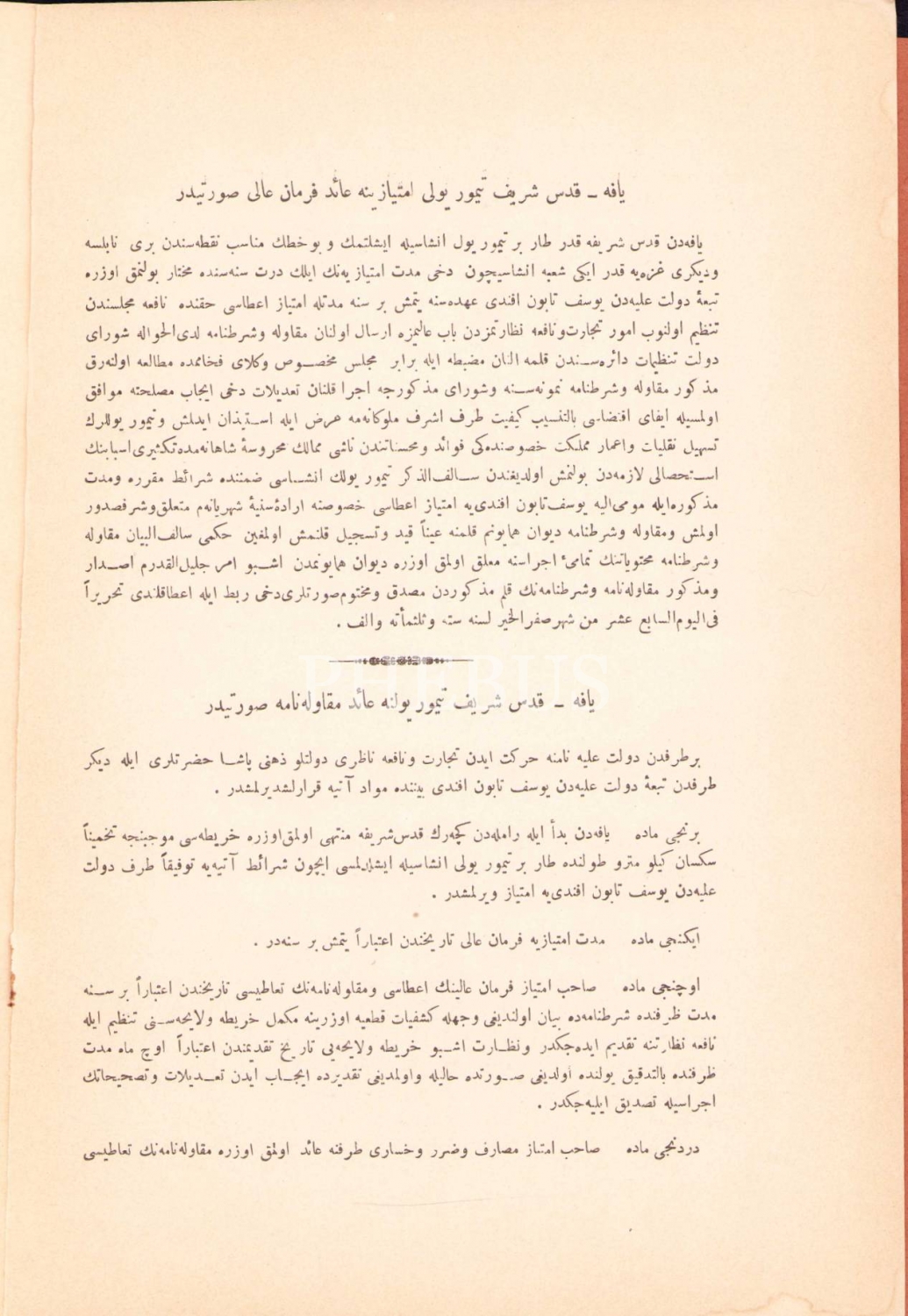 Yafa-Kudüs-i Şerif Demiryoluna Ait Evrak-ı İmtiyaziyye, Selanik Matbaası, Dersaadet, 1329 tarihli, 26 sayfa, 21x30 cm