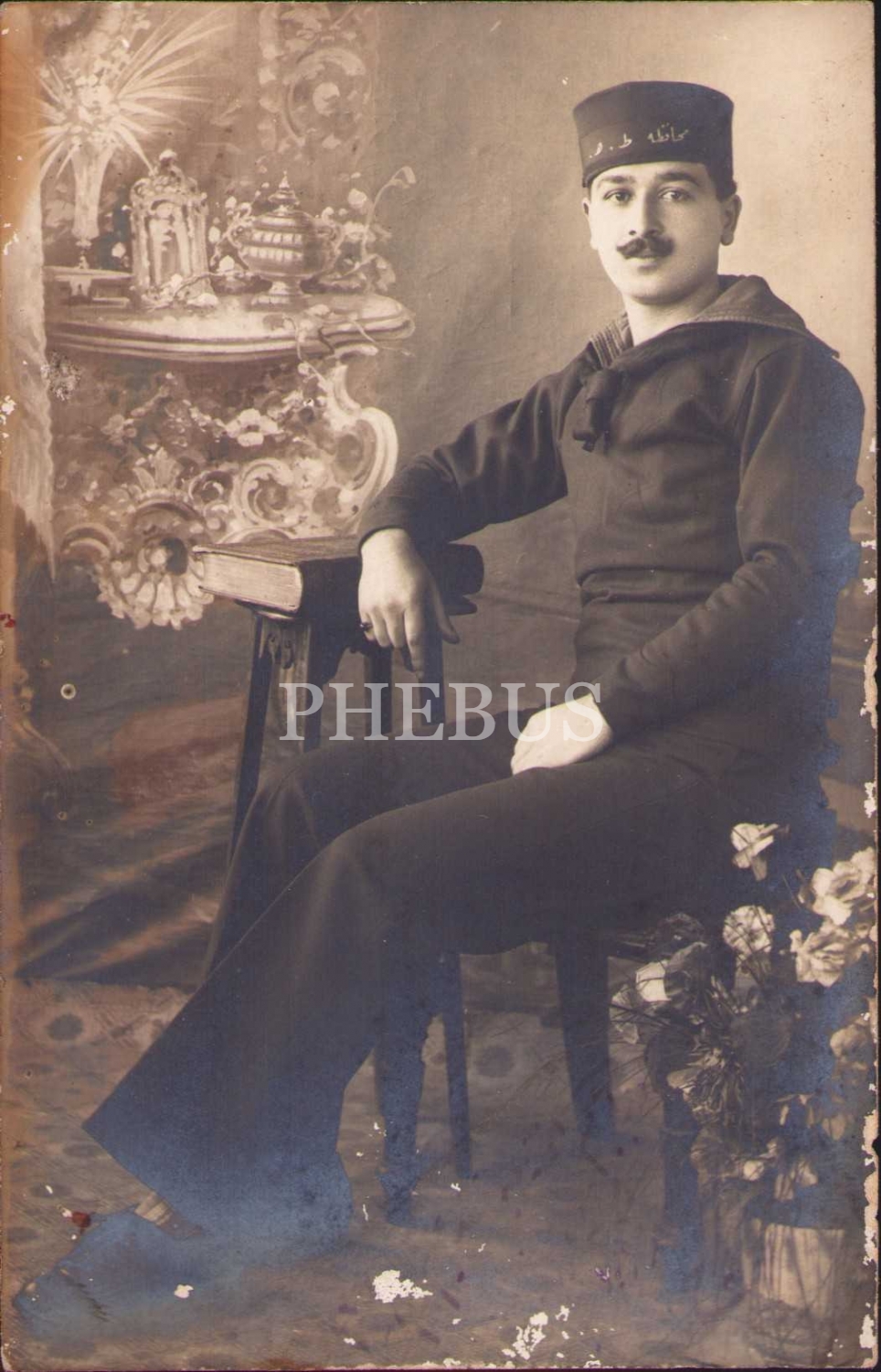 Şapkasında Osmanlıca "Muhafaza T.H." yazılı Bahriyeli, haliyle, 9x14 cm