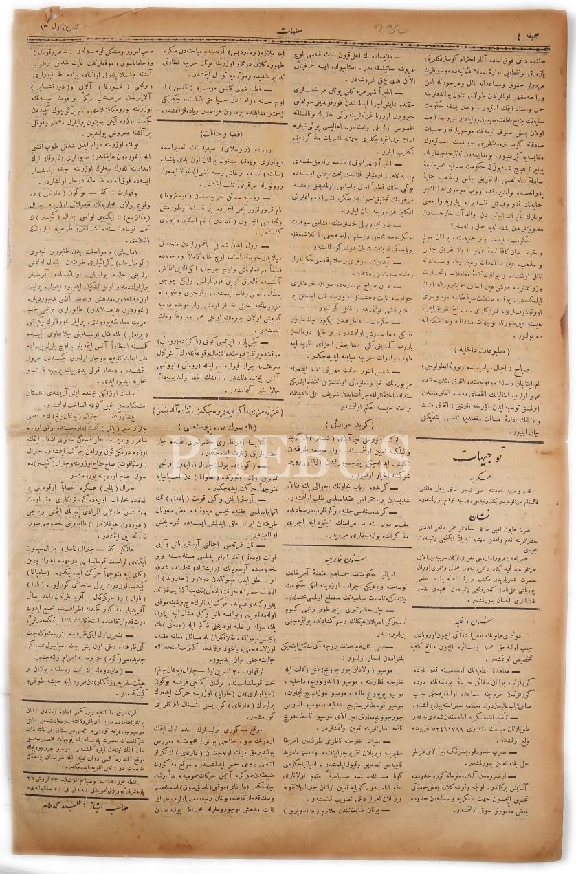Osmanlıca "Malumat" Gazetesi, "Ayvalık Kasabası'nın Manzarası", 1315 tarihli, 4 sayfa, 32x25 cm