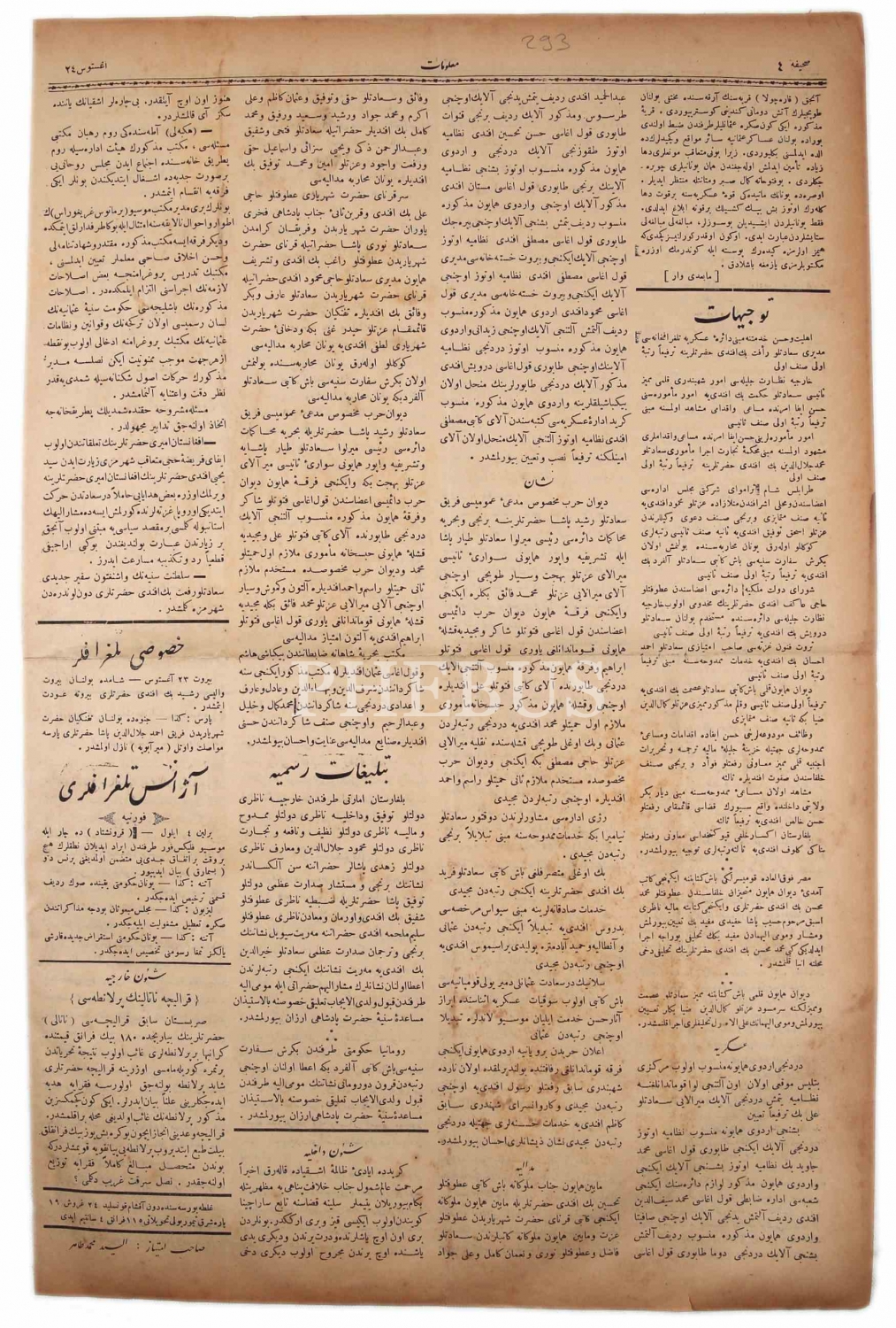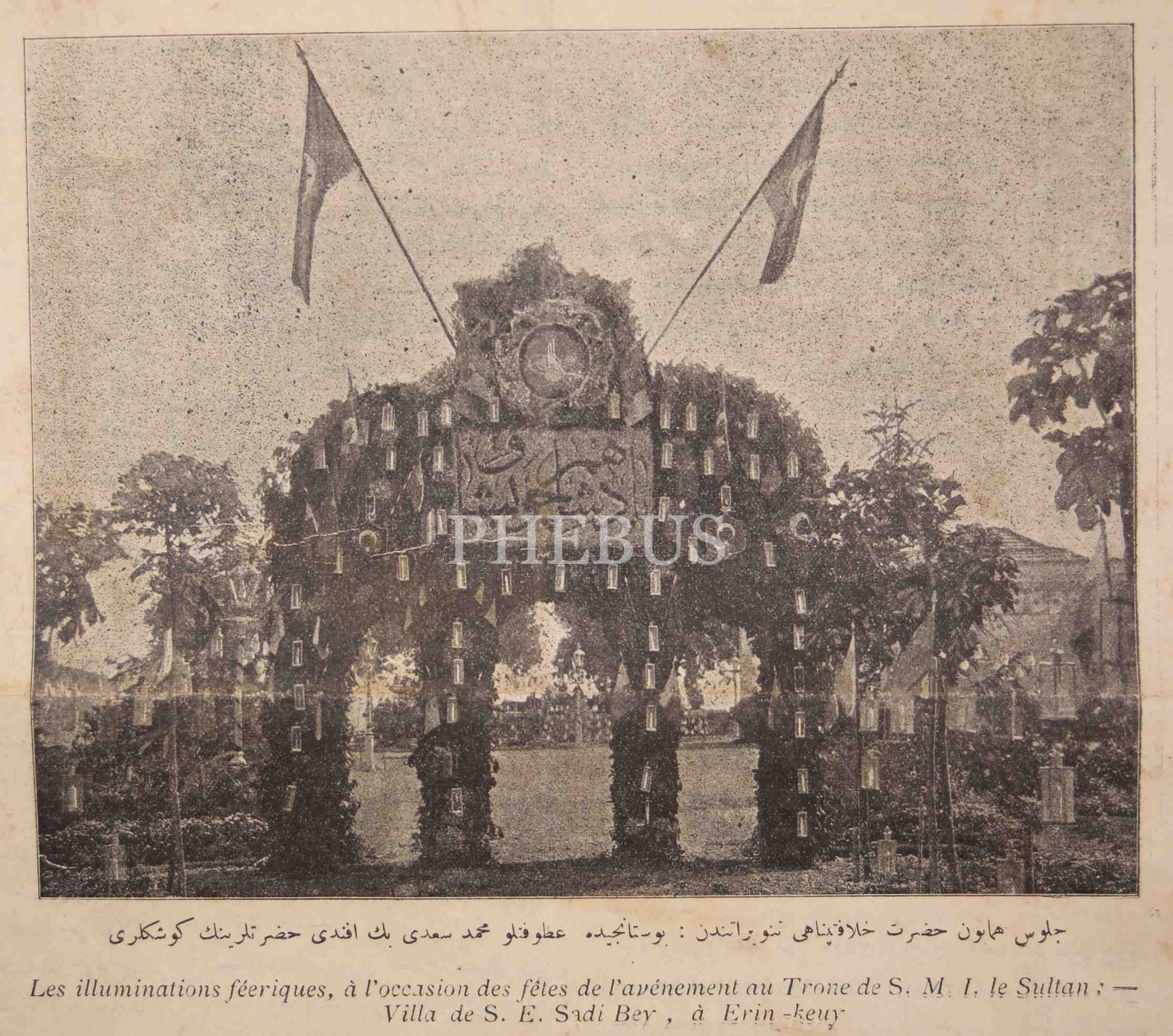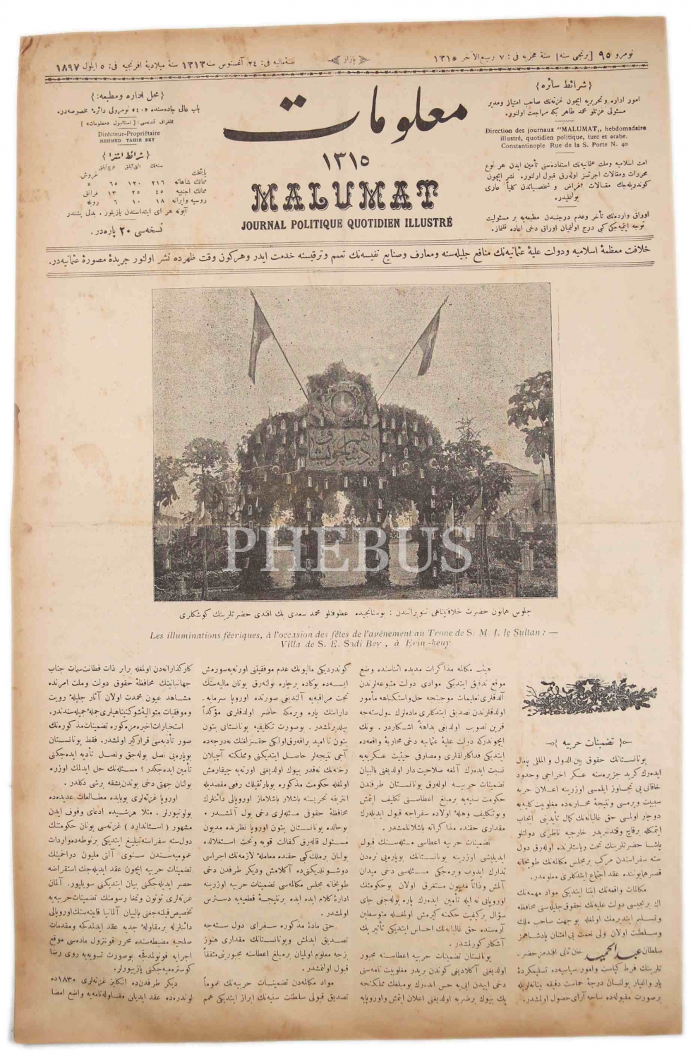 Osmanlıca "Malumat" Gazetesi, Padişahın Cülûsu Dolayısıyla Erenköyü'nde Bir Köşke Kurulan "Padişahım Çok Yaşa" Takı, 1315 tarihli, 4 sayfa, 32x25 cm