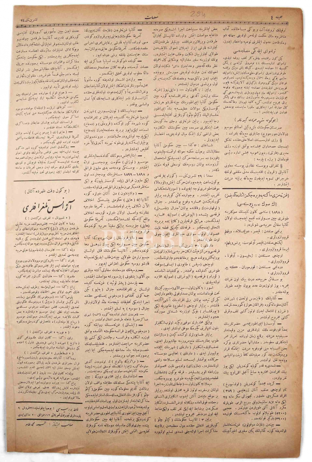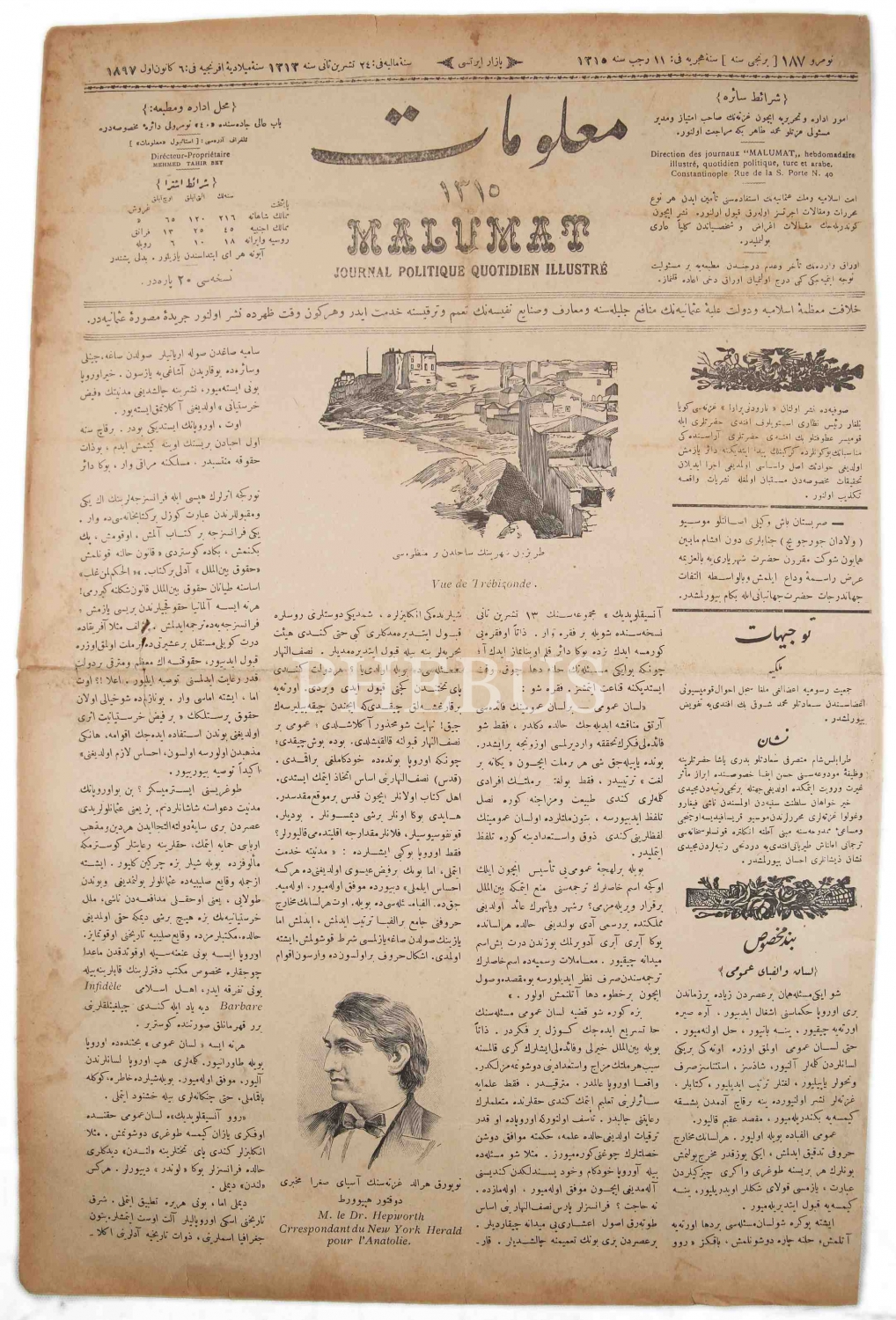 Osmanlıca "Malumat" Gazetesi, "Trabzon Şehrinin Sâhilden Manzarası", 1315 tarihli, 4 sayfa, 32x25 cm