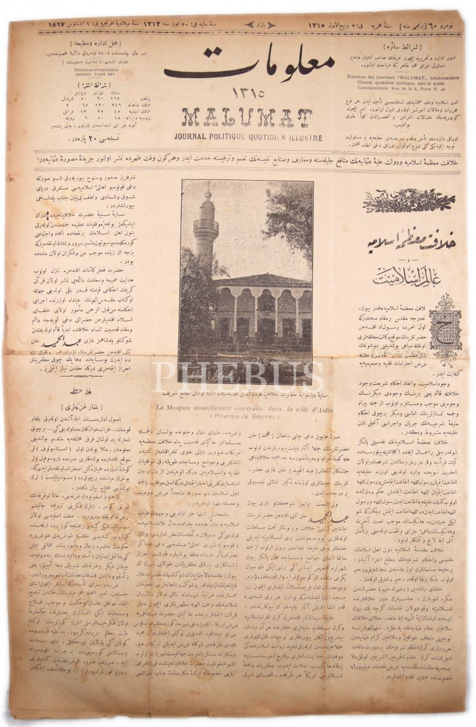 Osmanlıca "Malumat" Gazetesi, Aydın Kasabası'nda Camii [Smyrne], 1315 tarihli, 32x25 cm