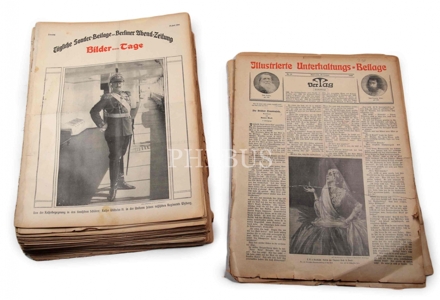 Almanca "Illustrierte Unterhaltungs Beilage" Mecmuası, 1909 - 1910 tarihli 134 adet sayı mevcut, birkaç sayısı haliyle, 30x41 cm