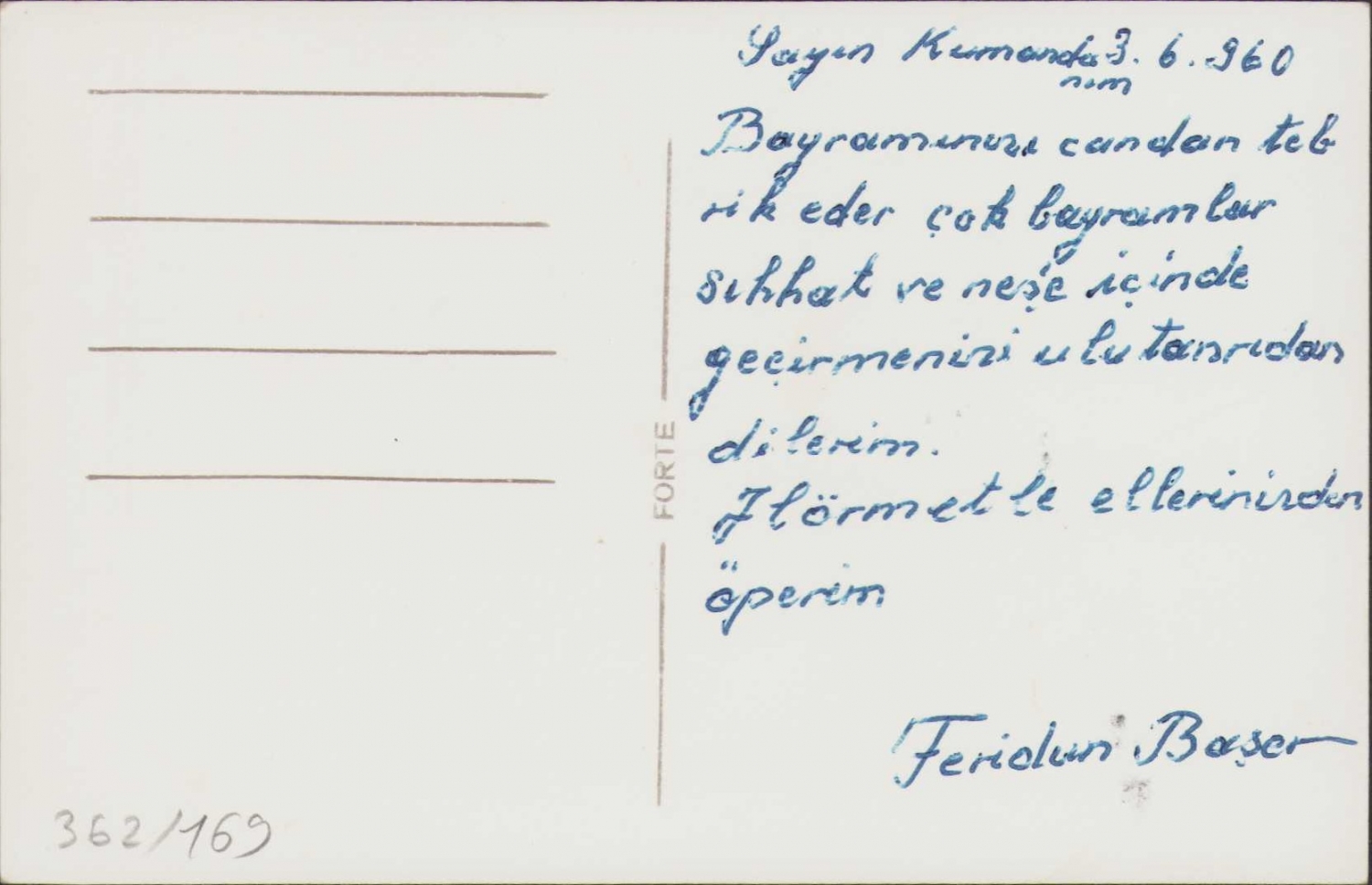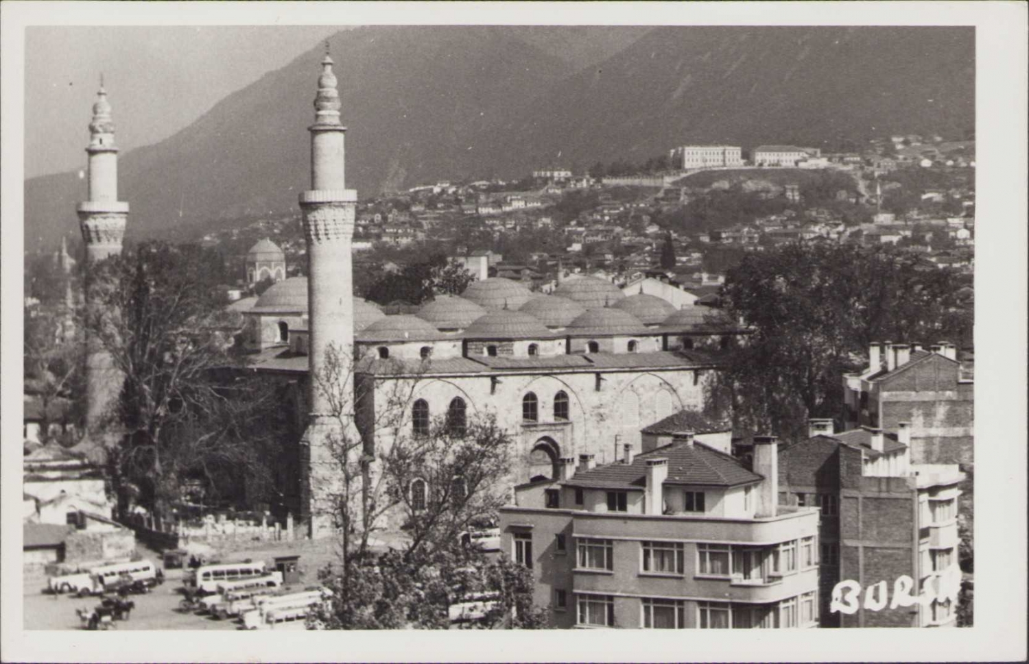 Bursa şehir manzarası, 1960 tarihli, arkası bayram tebrik mesajlı, 14x9cm
