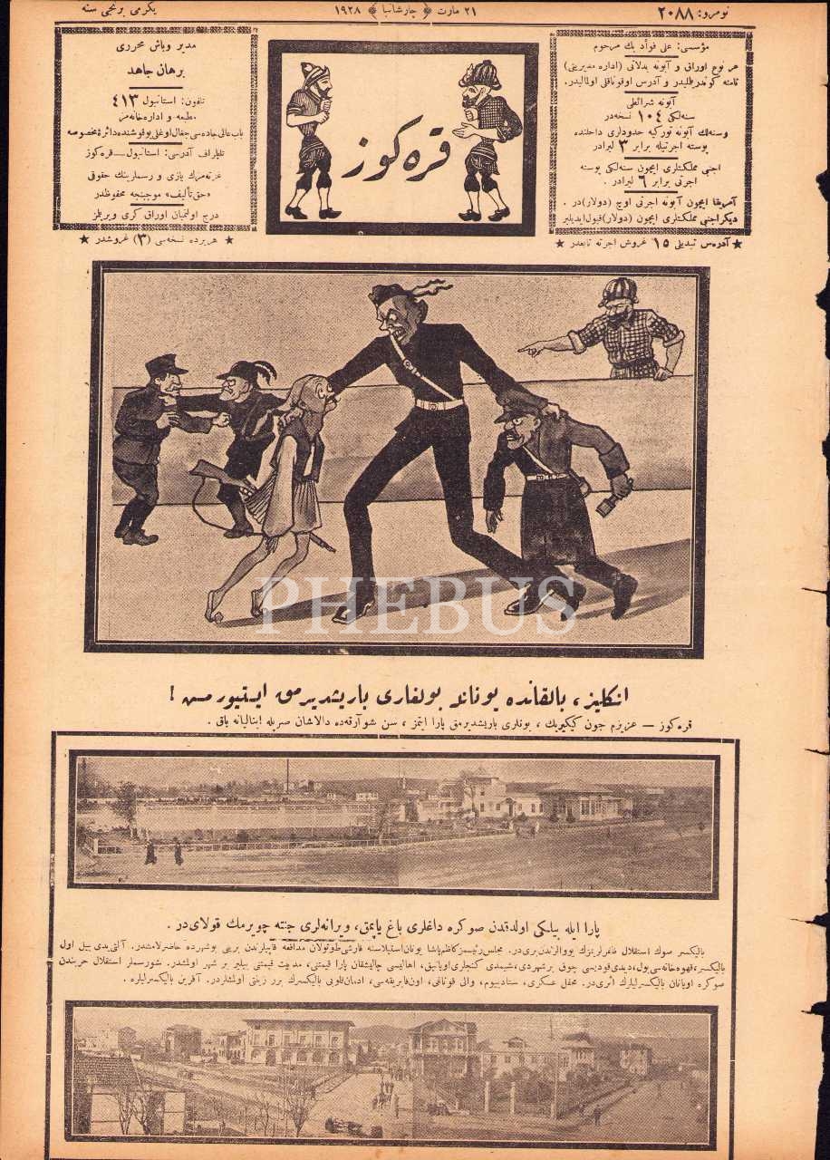 Osmanlıca Karagöz gazetesi, 21 Mart 1928, 4 syf., 27x39 cm, ciltten çıkma