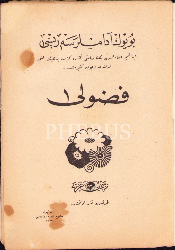 Osmanlıca Büyük Adamlar Serisi: Fuzulî, Resimli Gazete Yayınları, İstanbul 1927, 14 s., 14x20 cm
