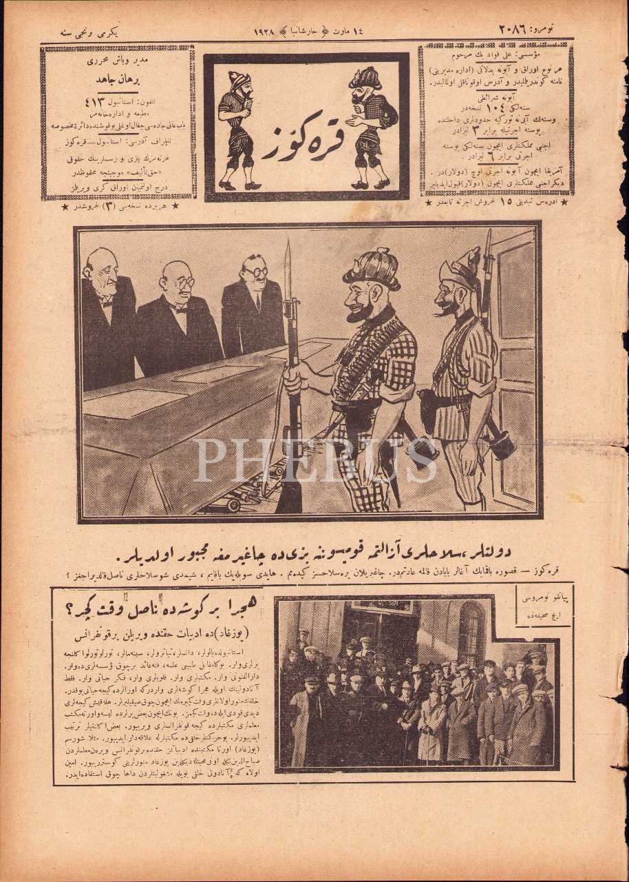 Osmanlıca Karagöz gazetesi, 14 Mart 1928, 4 syf., 27x38 cm, haliyle