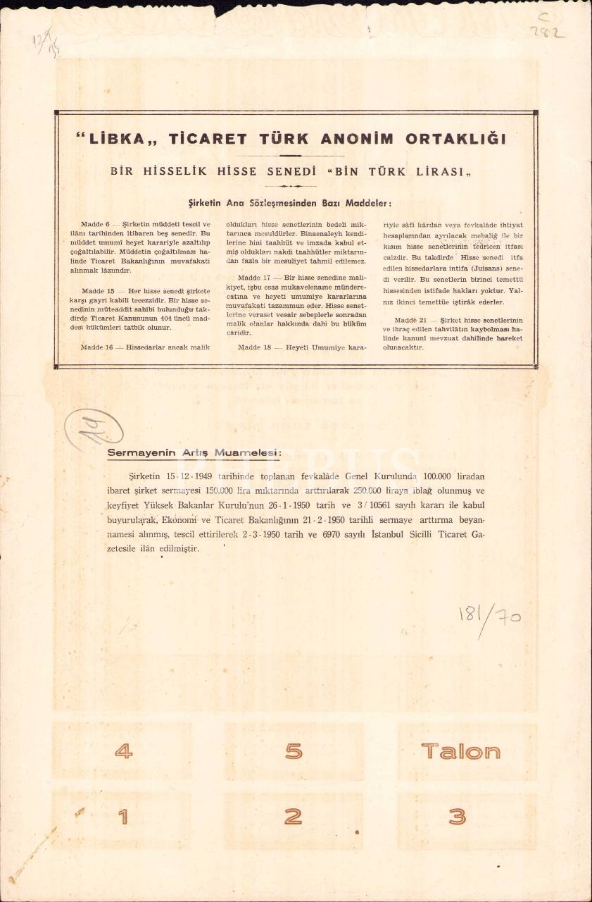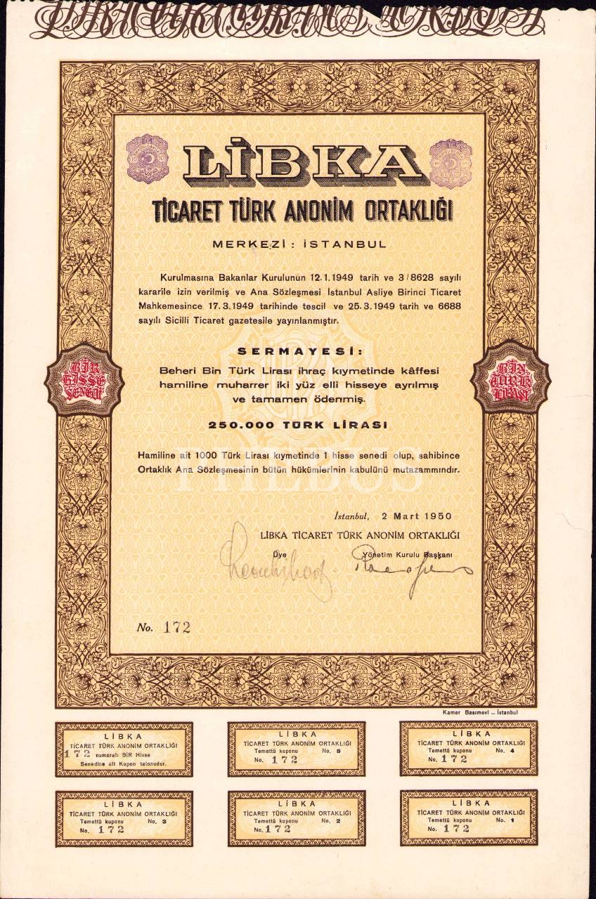 Libka Ticaret Türk Anonim Ortaklığı hisse senedi, 25x37 cm