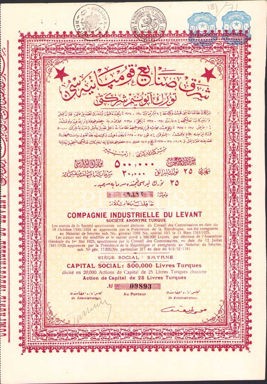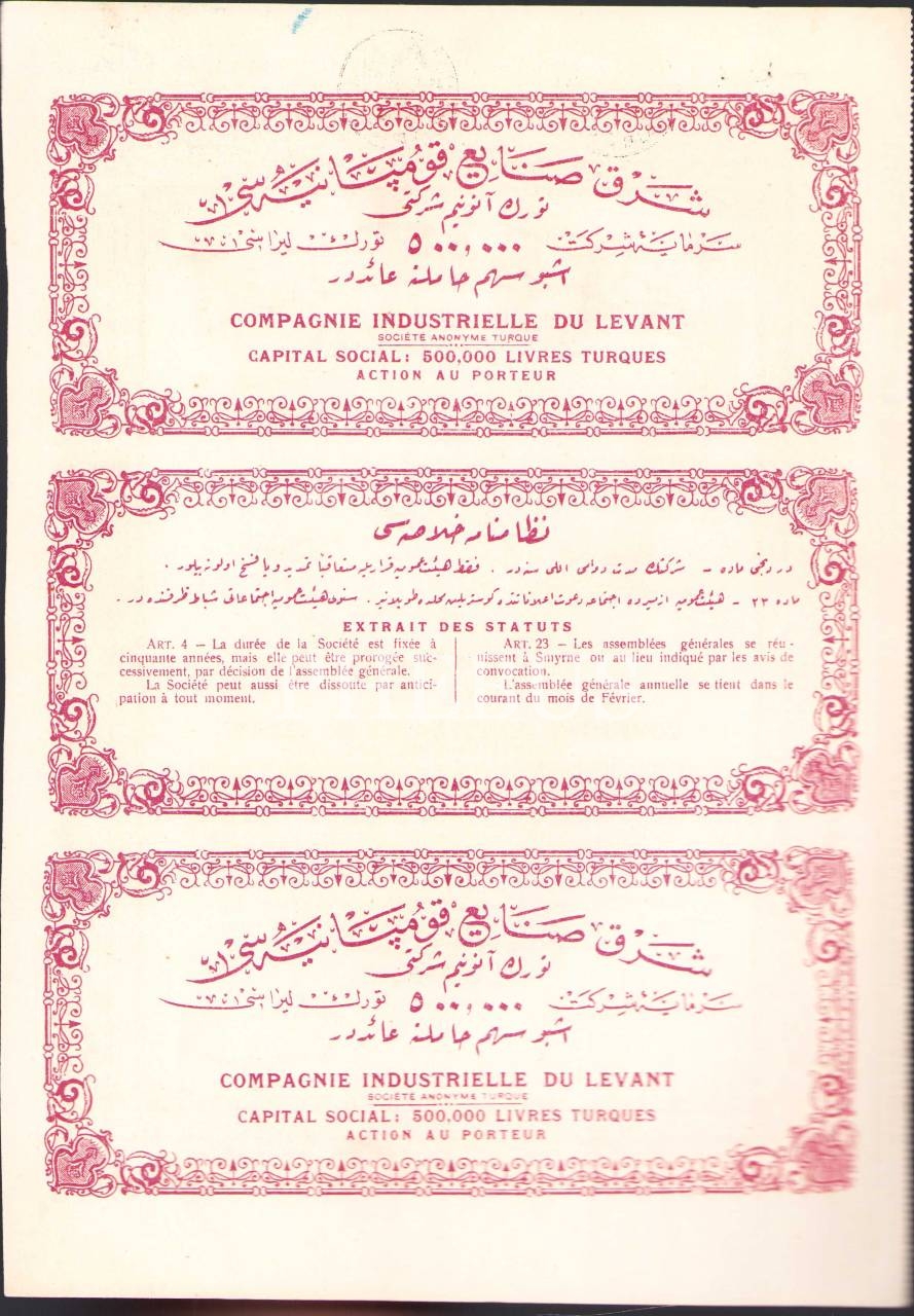 Osmanlıca-Fransızca Şark Sanayi Kumpanyası Türk Anonim Şirketi hisse senedi, 20x29 cm