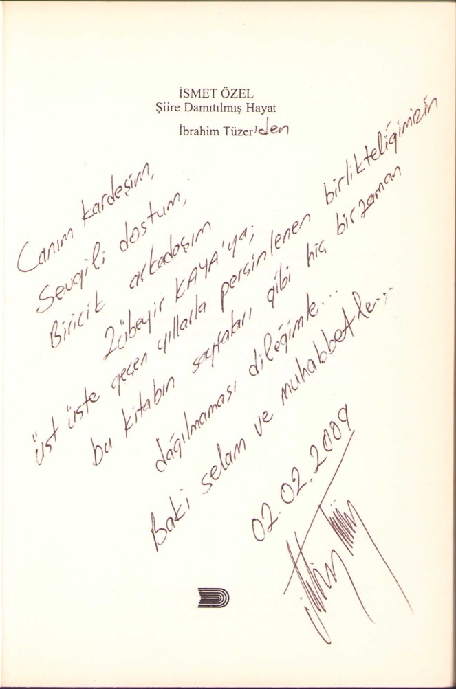 İbrahim Tüzer'den İthaflı ve İmzalı ''İsmet Özel - Şiire Damıtılmış Hayat'', Dergah Yayınları, 1. Baskı: Şubat 2008, 608 sayfa