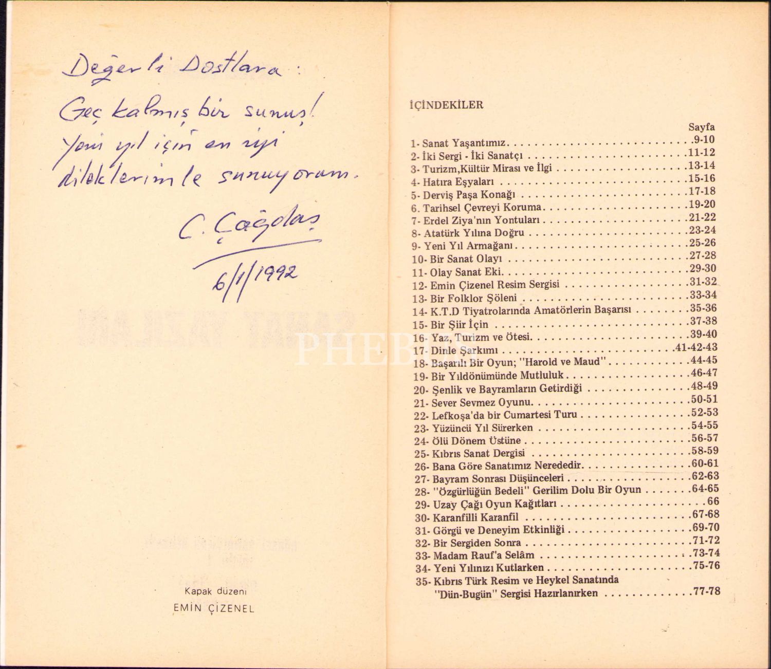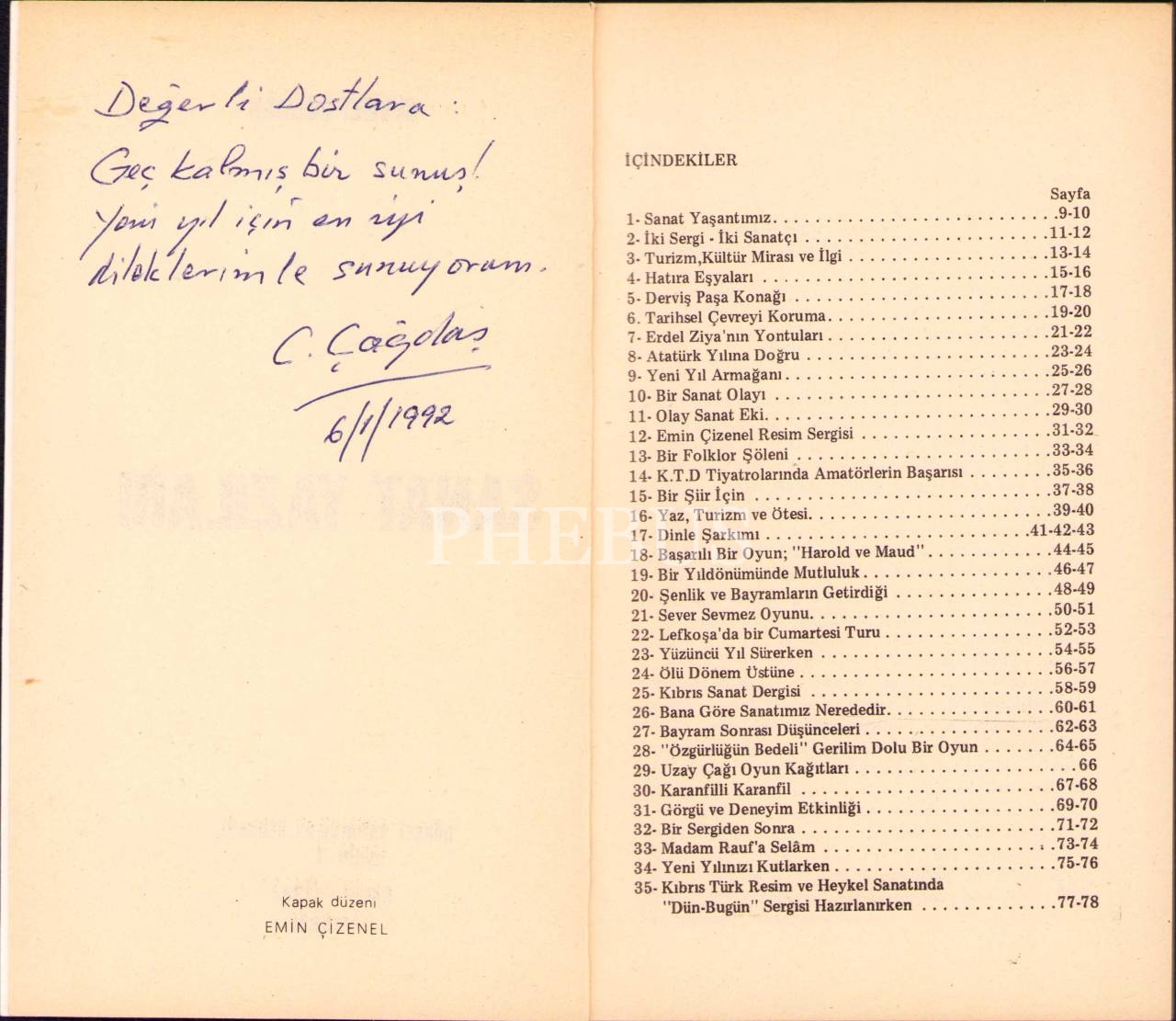 İthaf, ''Değerli Dostlara: Geç kalmış bir sunuş! Yeni yıl için en iyi dileklerimle sunuyorum. C. Çağdaş 6/1/1992'' şeklindedir.
