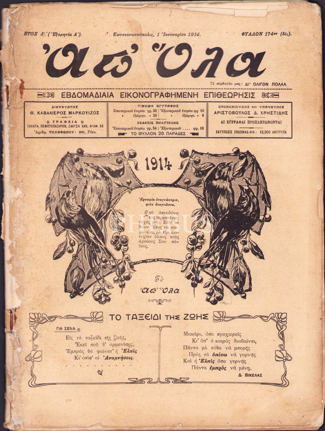 1914 tarihli İstanbul baskı Rumca gazete cildi, kenarları haliyle, 25x34 cm