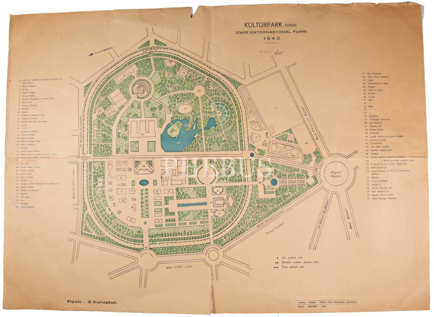 Arka yüzünde 1940 tarihli İzmir Enternasyonal Fuarı krokisi bulunmaktadır.