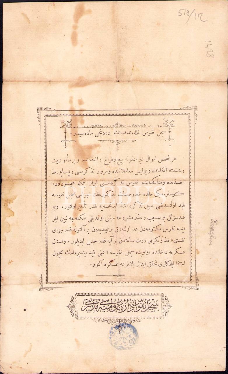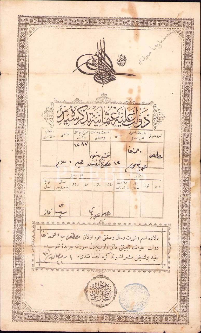 Osmanlıca 1301 tarihli nüfus tezkiresi, 18x29 cm