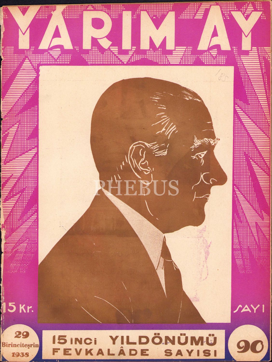 Yarım Ay, Sayı: 90, 29 Birinciteşrin 1938, Cumhuriyetin 15. Yıldönümü Fevkalade Sayısı, sayfalardan sırttan ayrılmış, haliyle