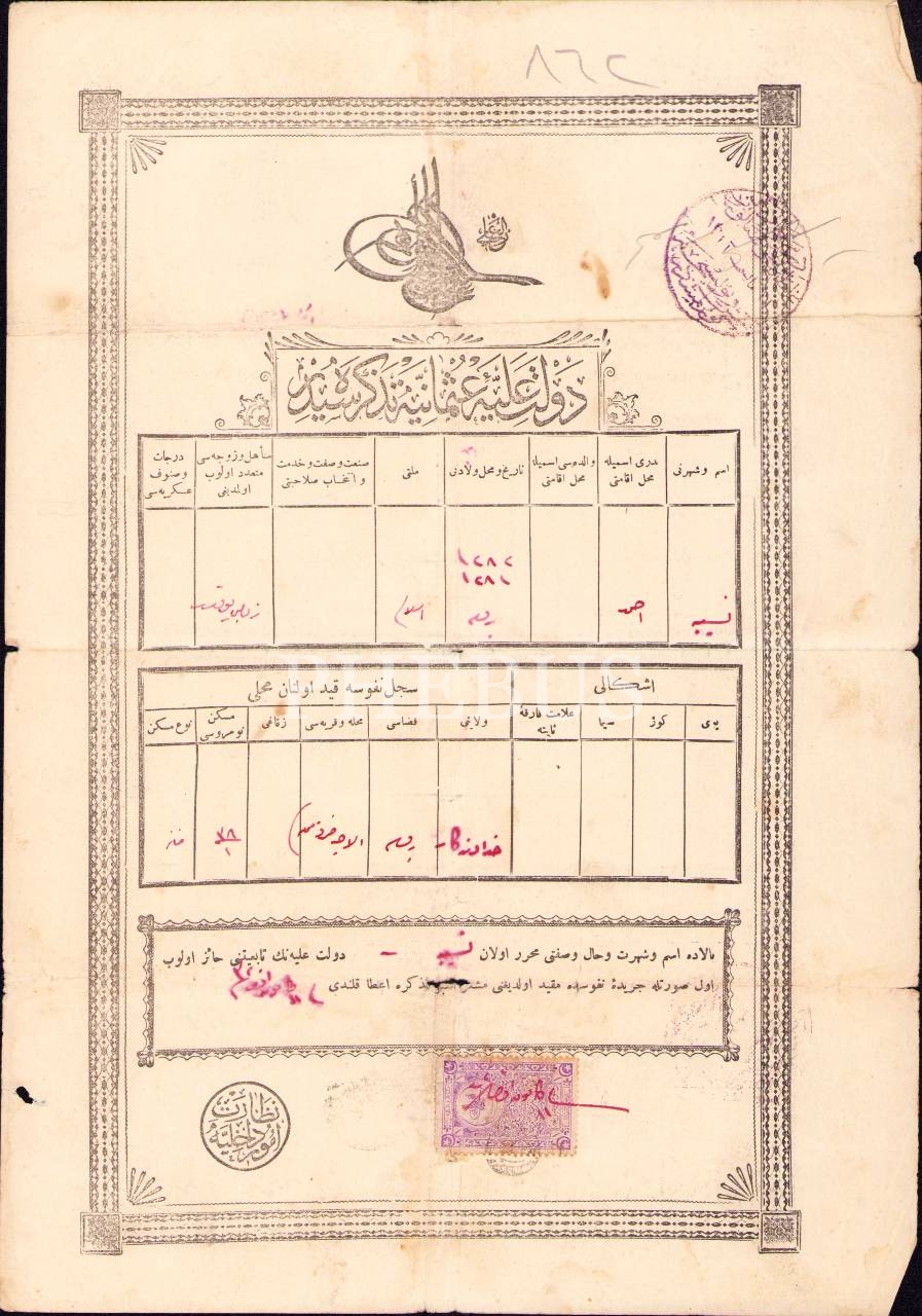 Osmanlıca nüfus tezkiresi, Bursa 1320, 24x35 cm, yıpranmış haliyle