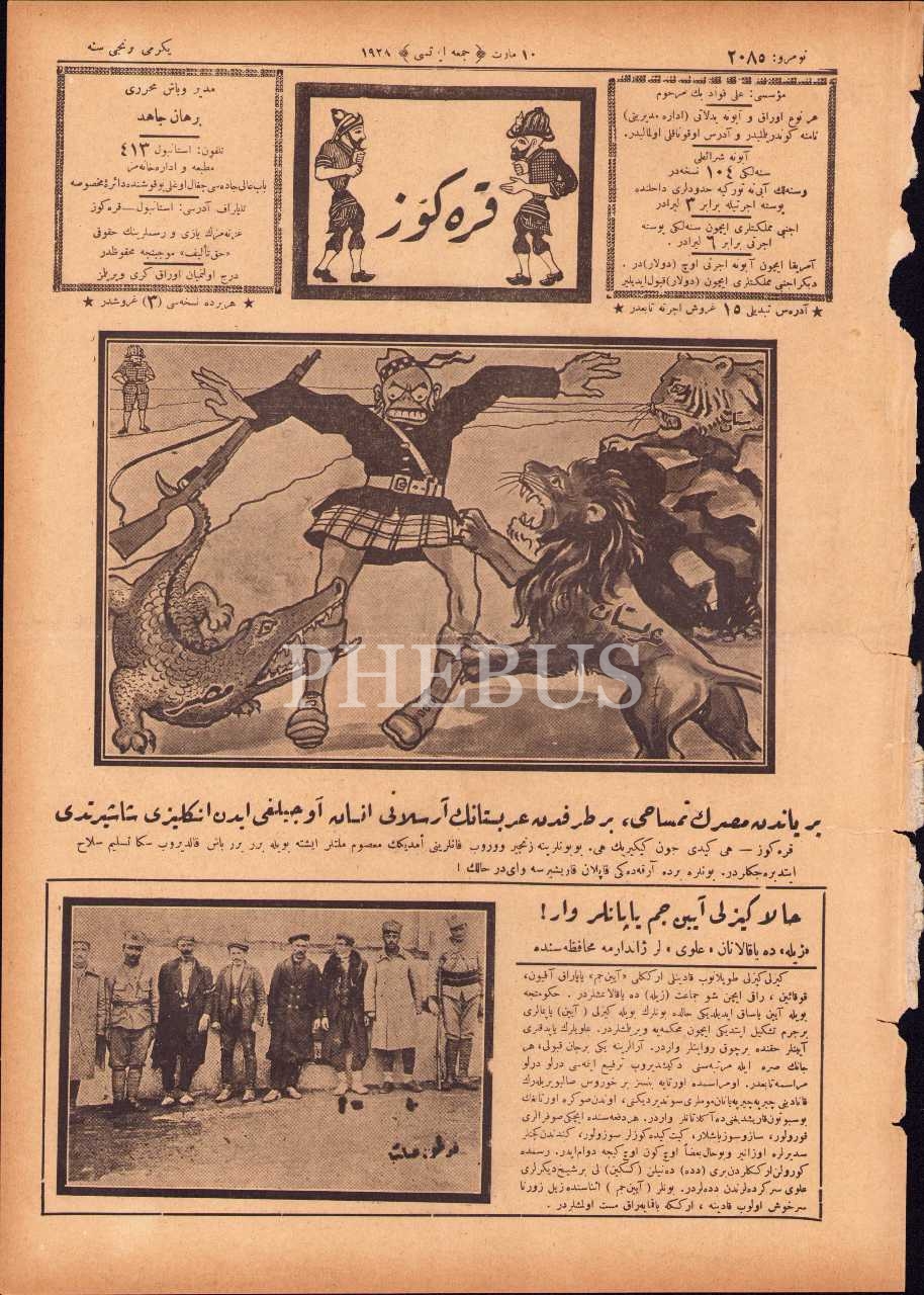 Osmanlıca Karagöz gazetesi, 10 Mart 1928, 4 syf., 27x39 cm, ciltten çıkma