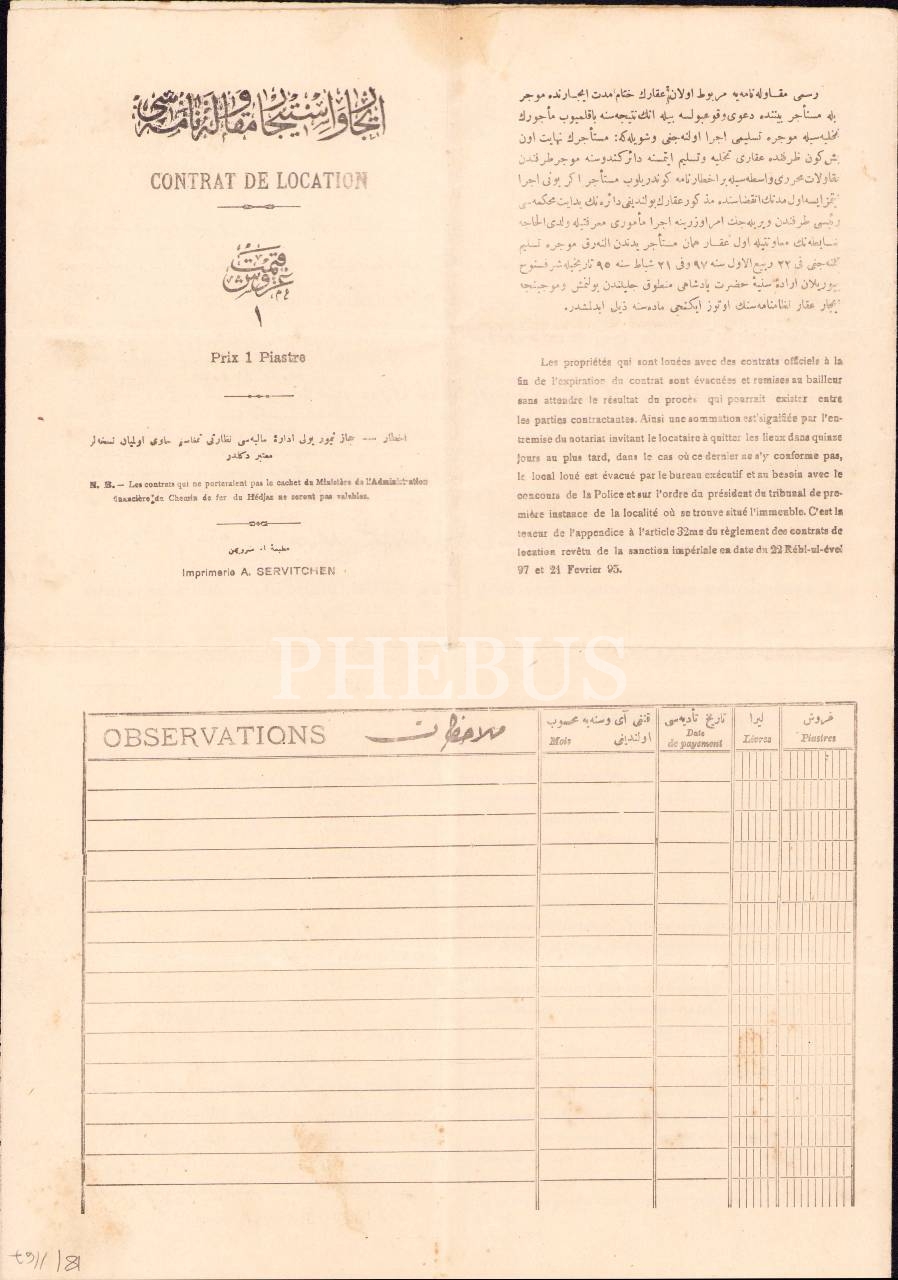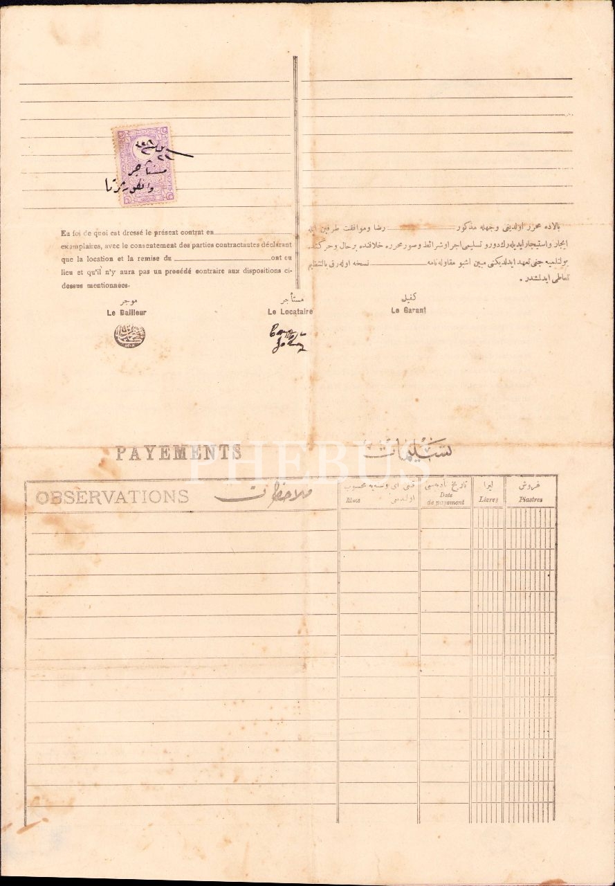 Osmanlıca-Fransızca kira sözleşmesi, 1328 tarihli, 29x41 cm