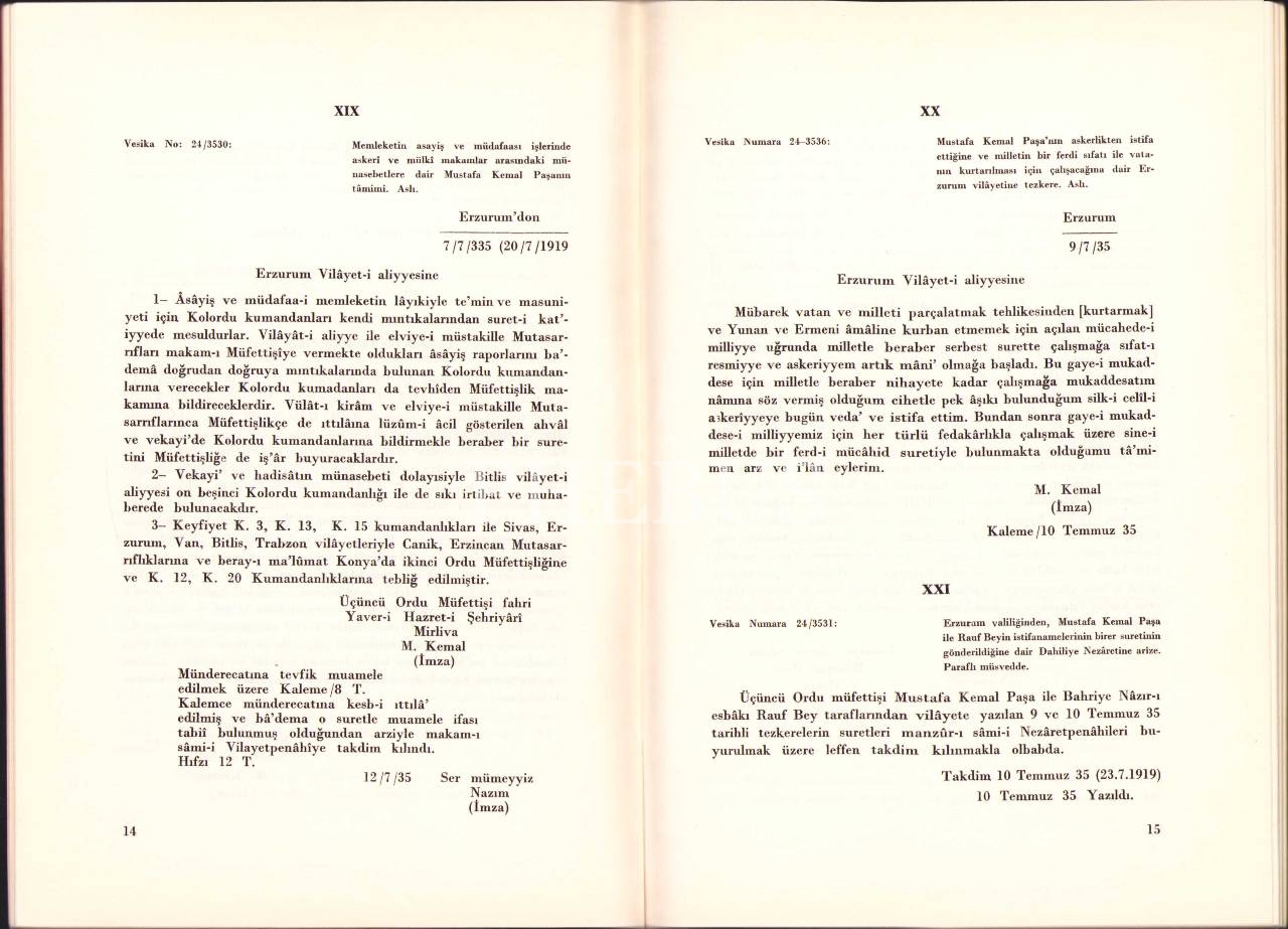 Erzurum Kongresi ile İlgili Belgeler, haz. Bekir Sıtkı Baykal, Türk İnkılap Tarihi Enst. Yay., 63 s., 16x24 cm