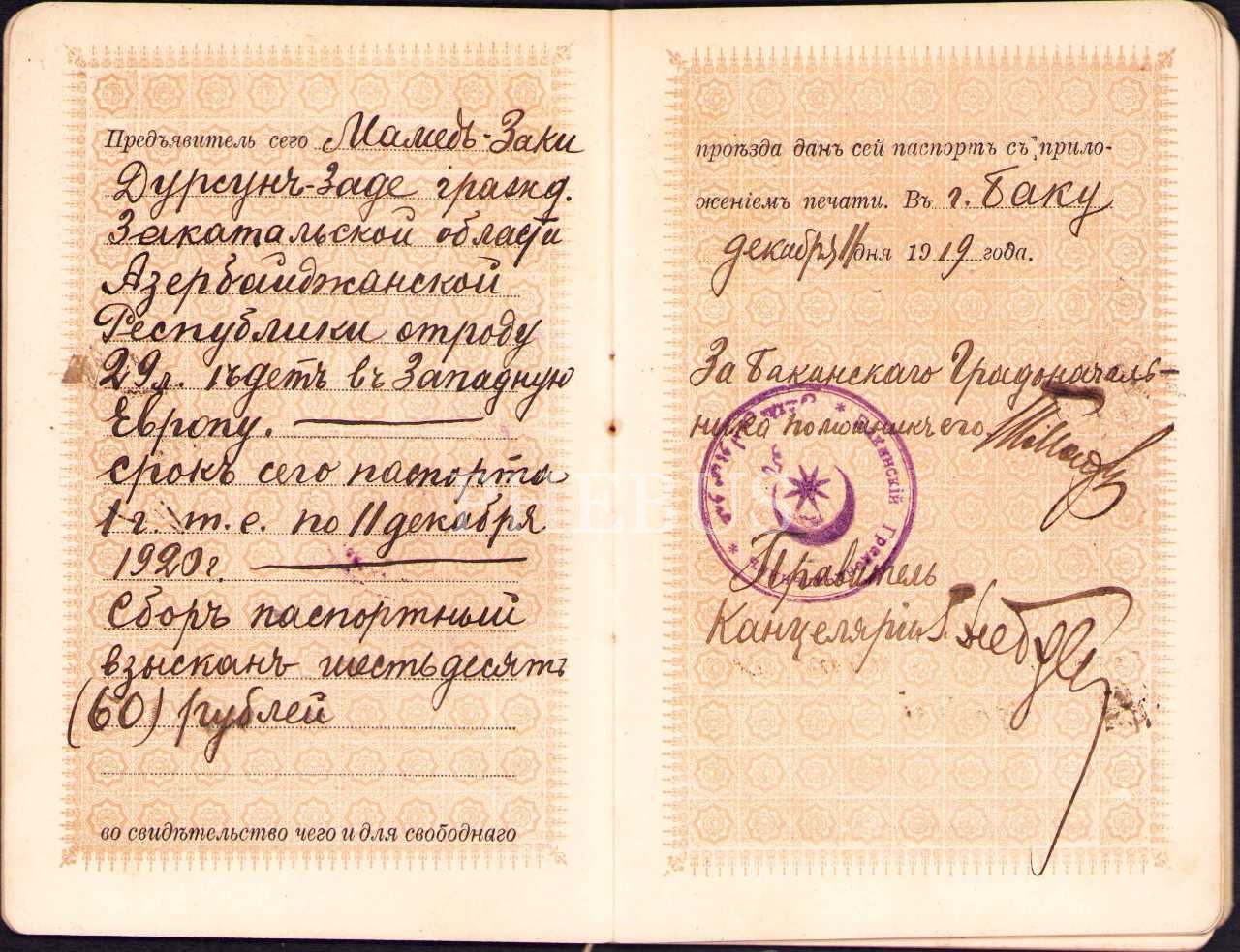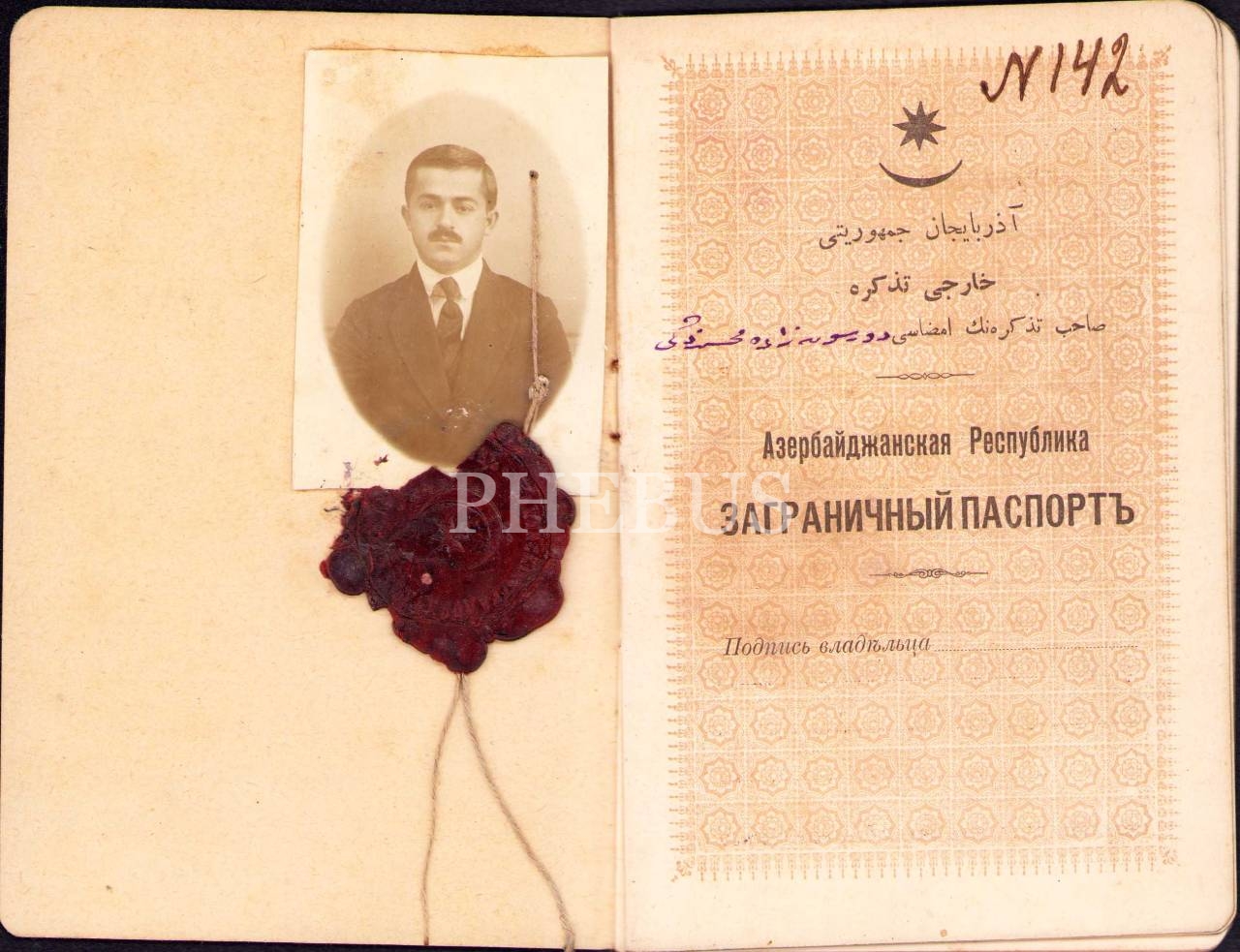 Osmanlıca-Rusça Fotoğraflı Azerbaycan Cumhuriyeti Hâricî Tezkire [Pasaport], 10x16 cm