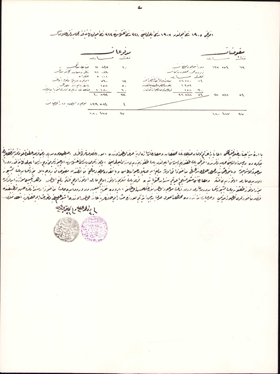 Osmanlıca 1905 Eylül-1907 Eylül muhasebe defteri özeti, 24x32 cm