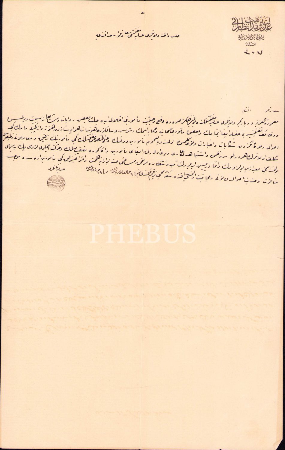 Haleb ve Adana vilayetleri adliye müfettişi Esad Efendi'ye, görevini hakkıyla yerine getirmeyip müfettişliğe yakışmayacak hareketlerde bulunduğundan ötürü yazılan uyarı mektubu.