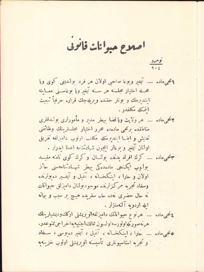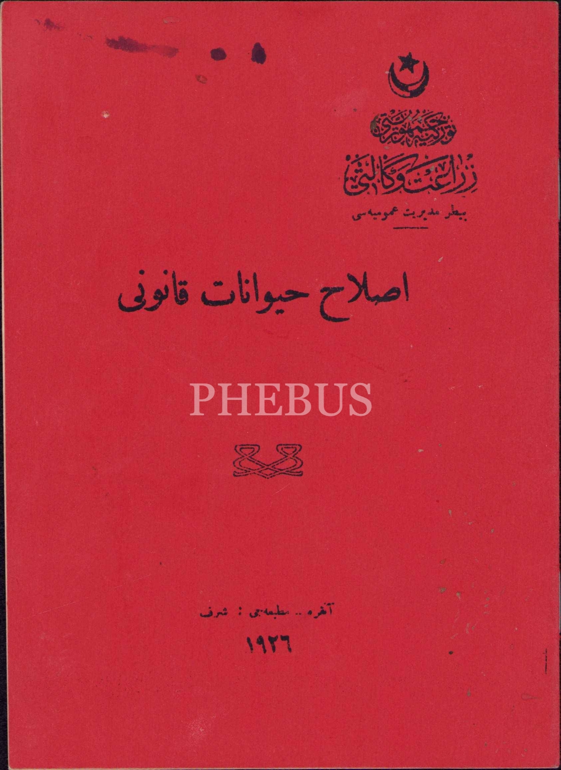 Osmanlıca Islâh-ı Hayvânât Kânûnu, Ziraat Vekaleti, Matbaacı Şeref, Ankara 1926, 14 s., 14x19 cm