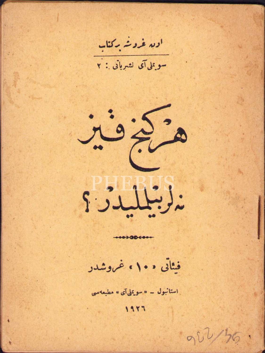 Osmanlıca Her Genç Kız Neler Bilmelidir?, Sevimli Ay Matbaası, İstanbul 1926, 54 s., 11x14 cm