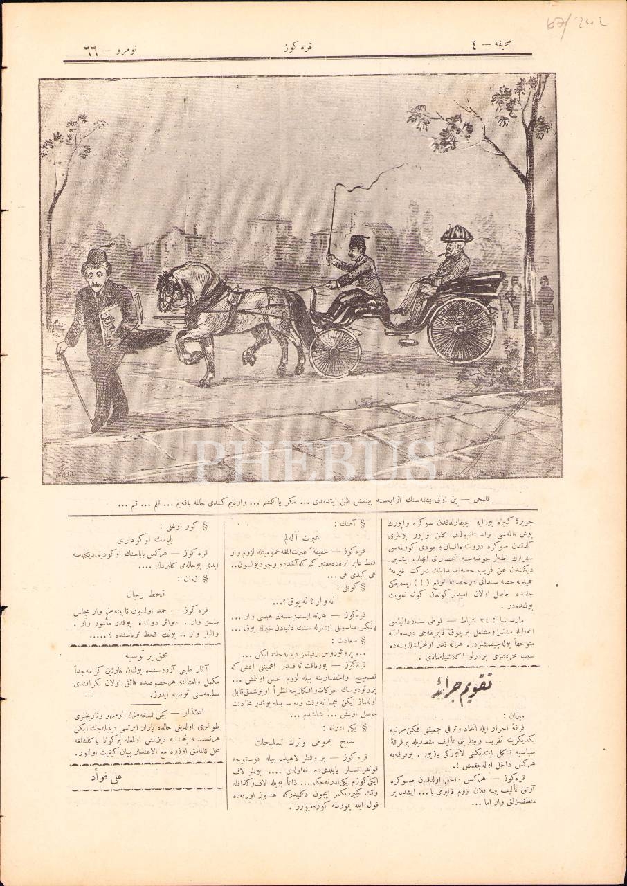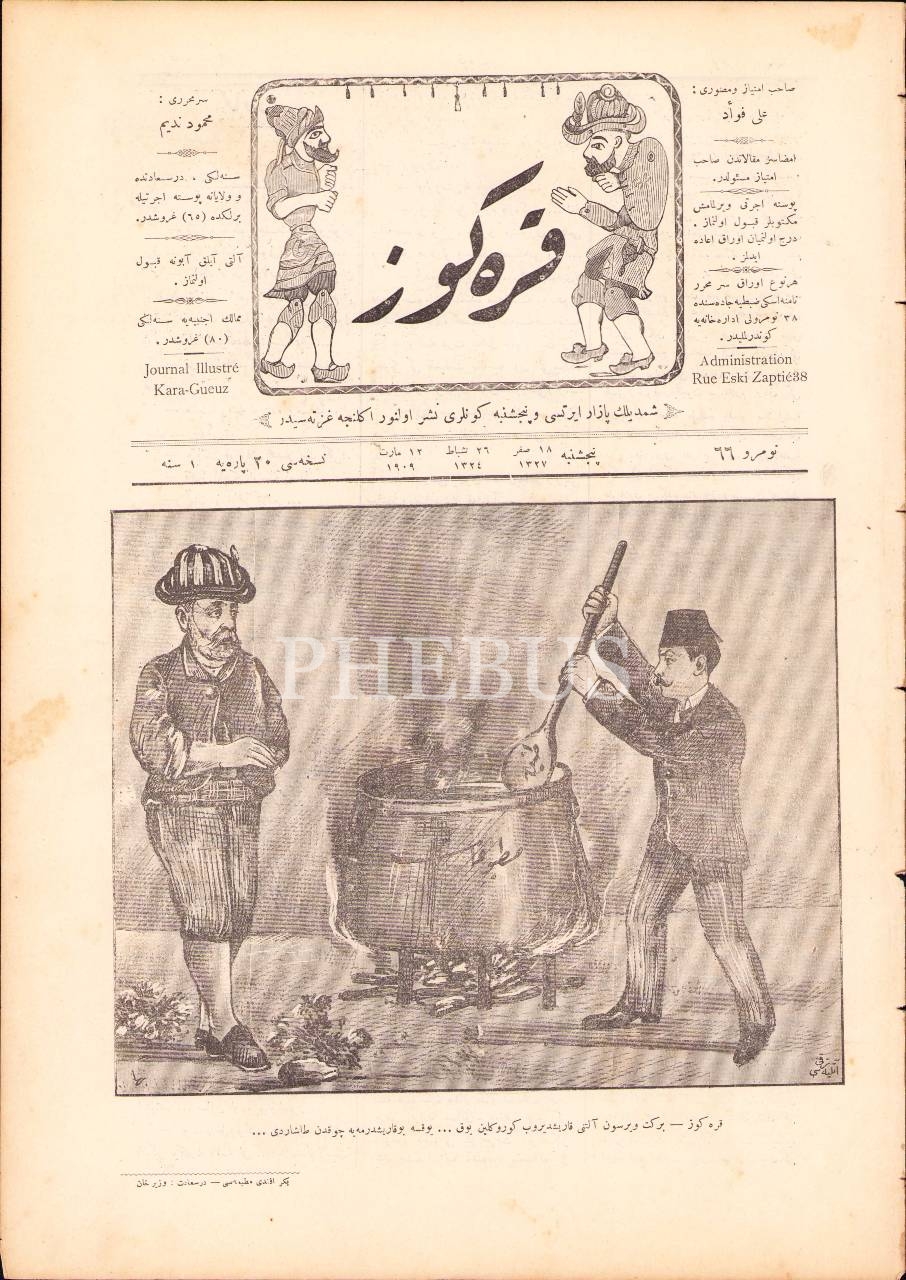 Osmanlıca Karagöz gazetesi 66. sayı, 12 Mart 1909, 4 s., 27x38 cm, ciltten çıkma