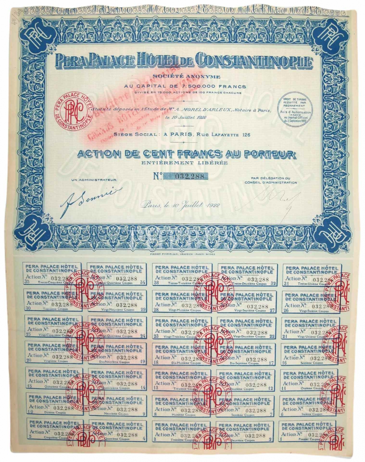 Pera Palace Hotel De Constantinople hisse senedi, 31x41 cm