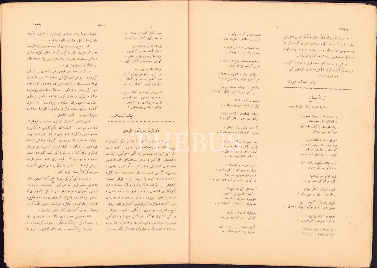 Bu sayısında Cenab Şehabeddin, Abdülhak Hamid, Süleyman Nazif, Abdulkah Cevdet vb. edebiyatçılara ait şiir ve yazılar mevcuttur.