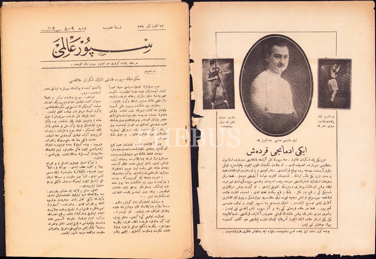 Osmanlıca Spor Âlimi dergisi 9. sayı, 13 Kanun-ı Sani 1339, 48 s., 21x28 cm, cilt sayfası kopuk haliyle