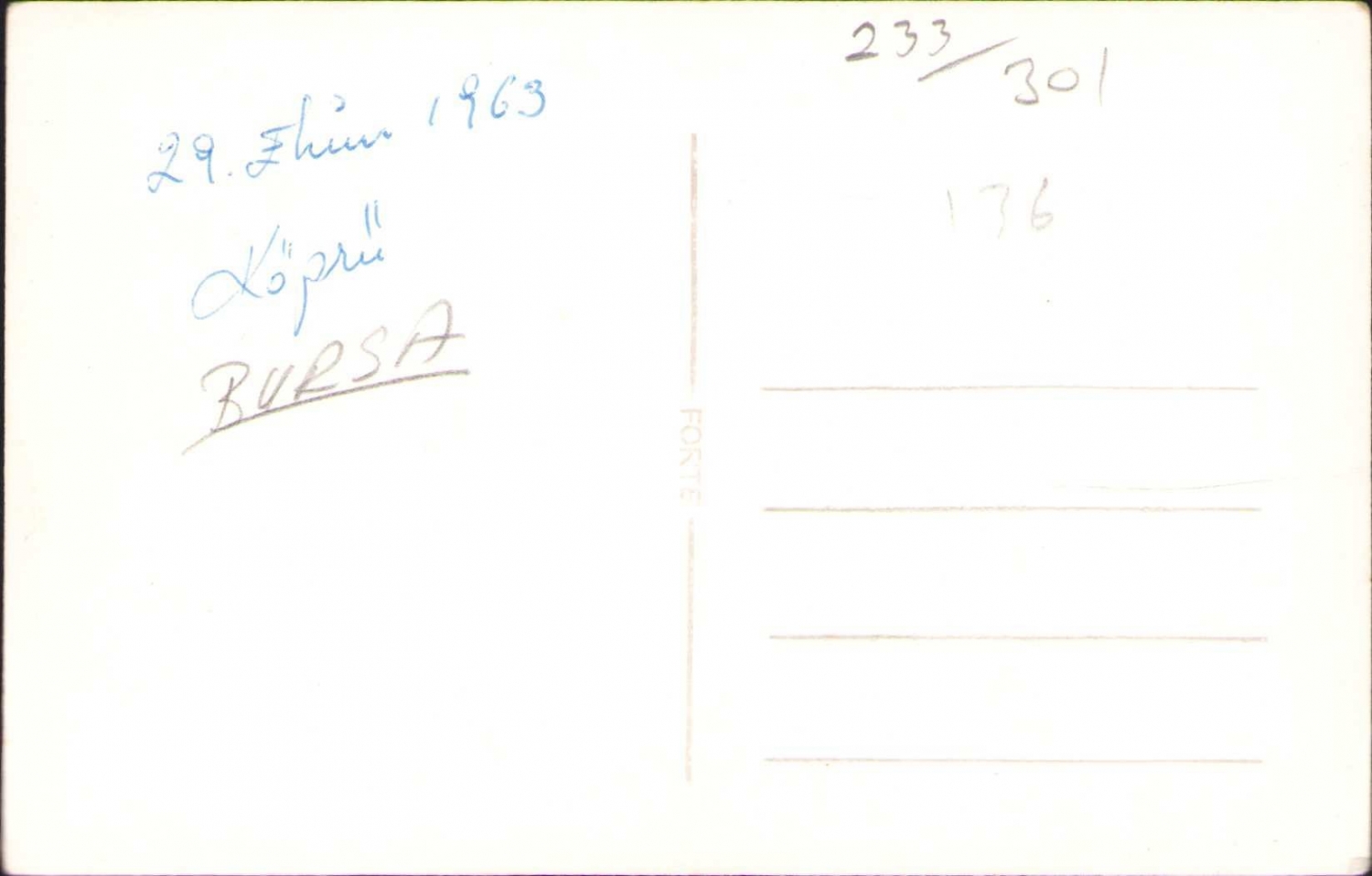 Arkasında Bursa'da olduğu belirtilmiş ve 1963 tarihi düşülmüştür.