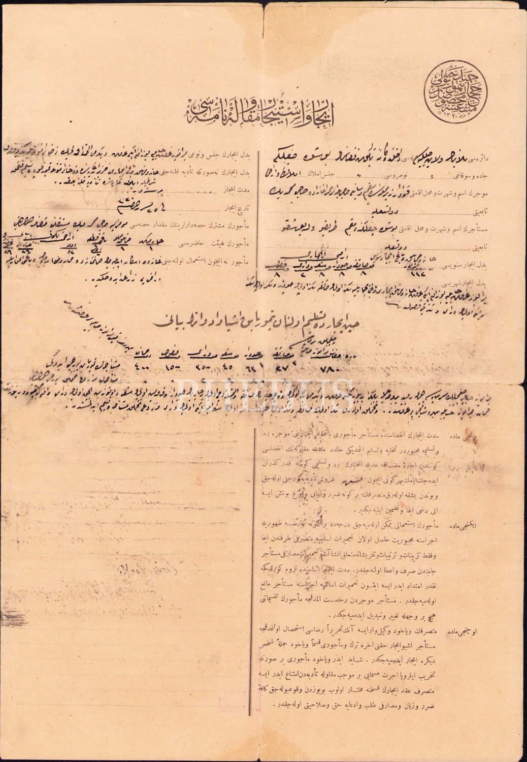 Osmanlıca kira sözleşmesi, Selanik 1320, 41x57 cm