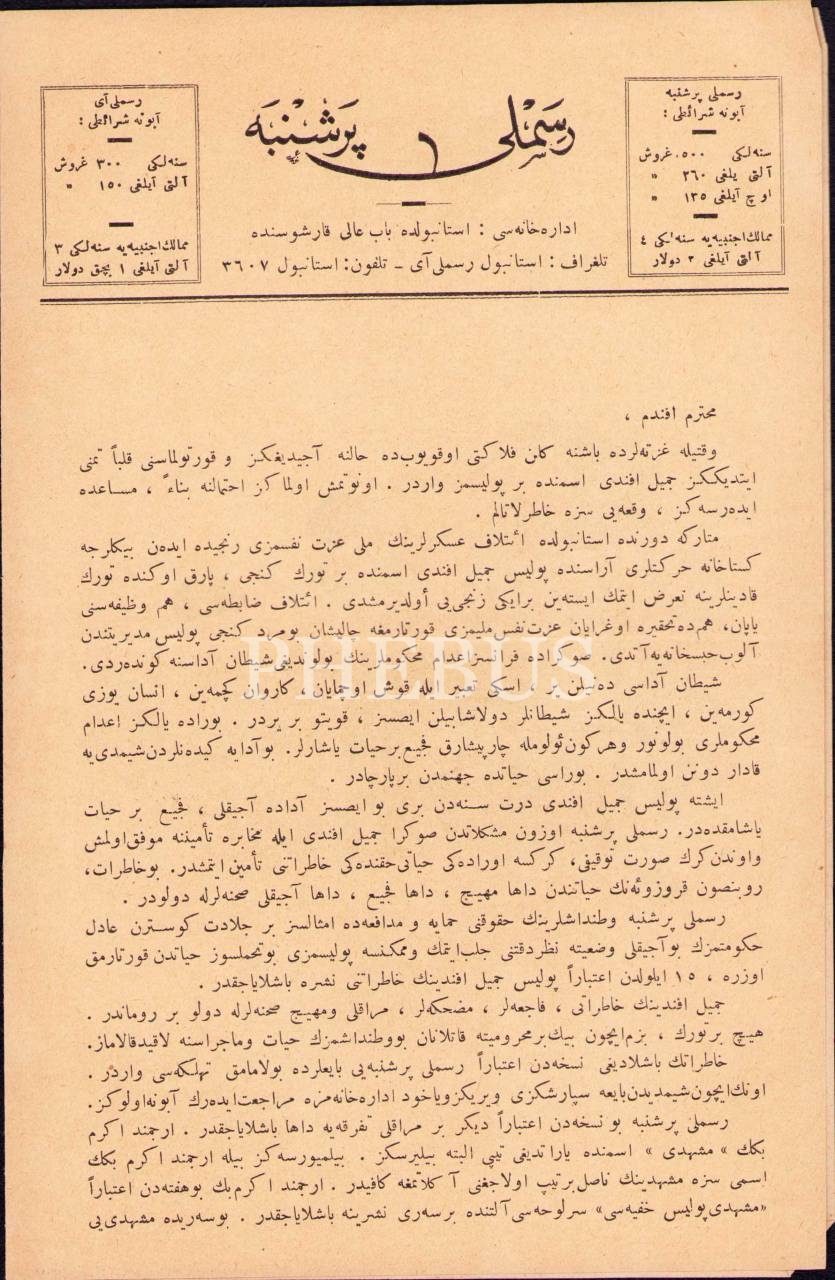Osmanlıca Resimli Perşenbe dergisi abonelik reklam kağıdı, 15x23 cm
