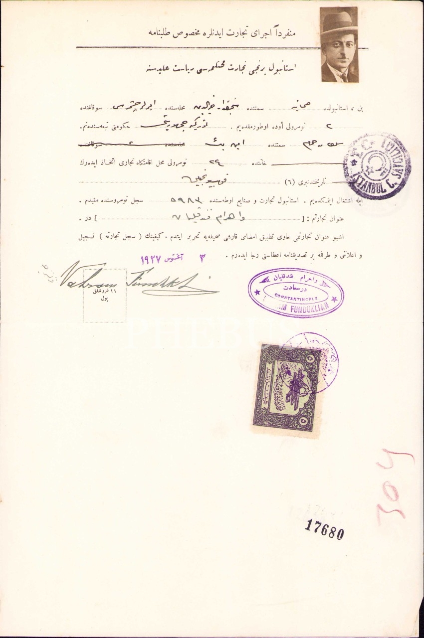 Osmanlıca ticari kayıt için fotoğraflı dilekçe, 1927, 21x31 cm