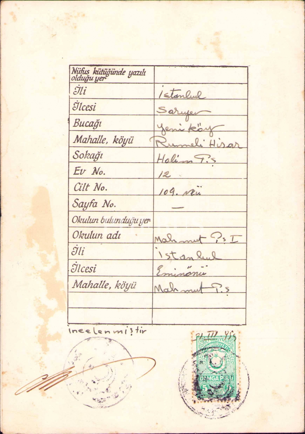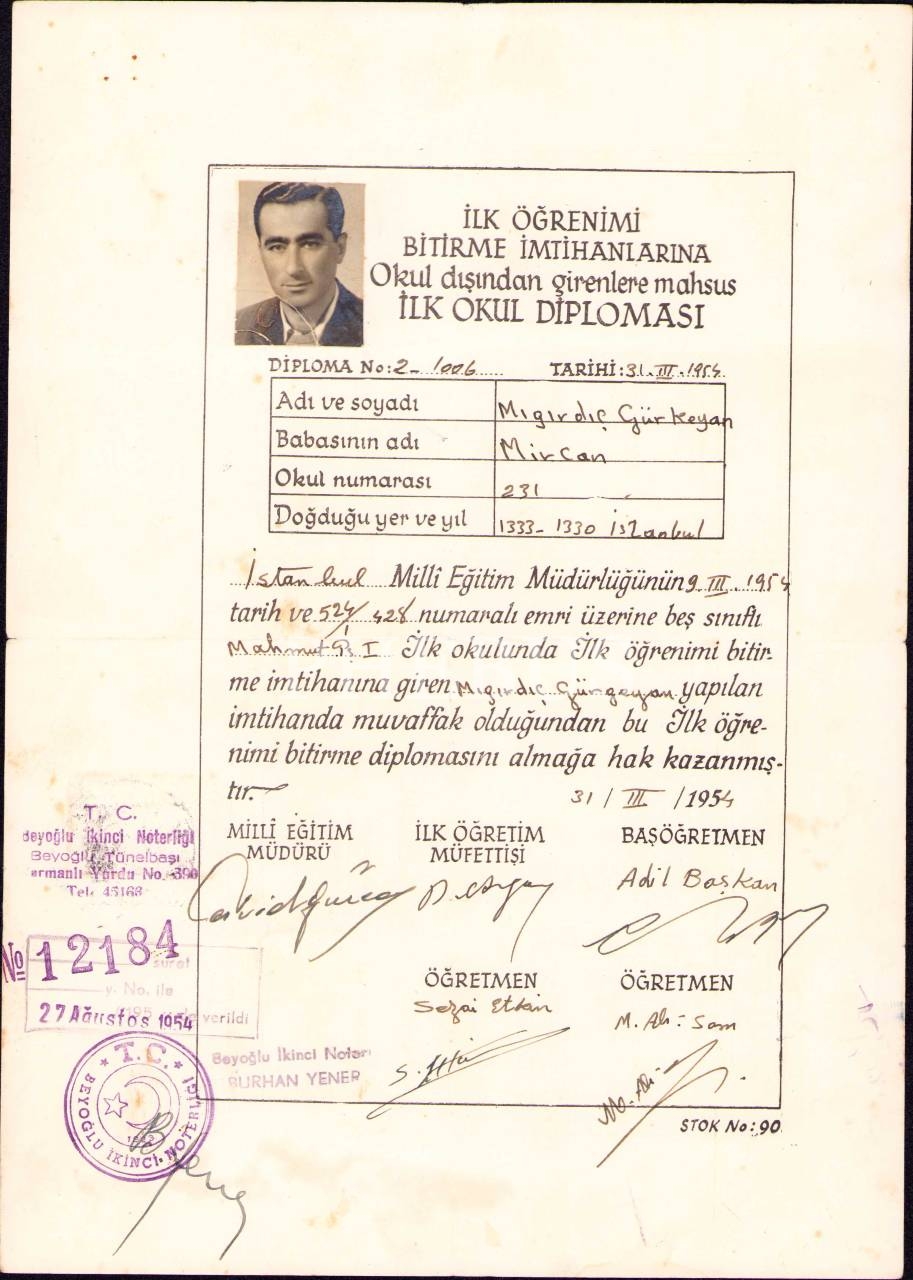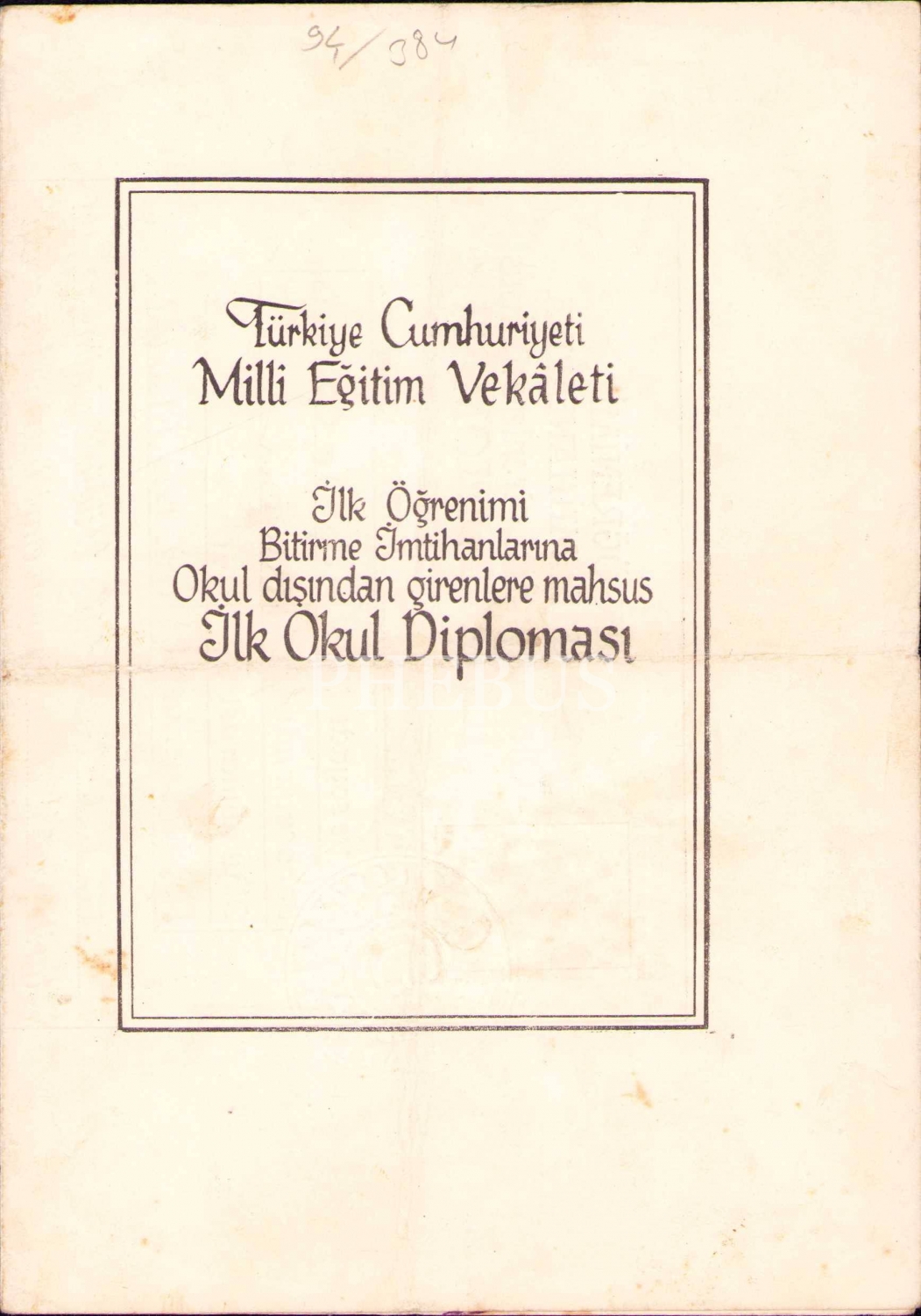 Fotoğraflı dışarıdan ilkokul bitirme diploması, 1954, 21x29 cm