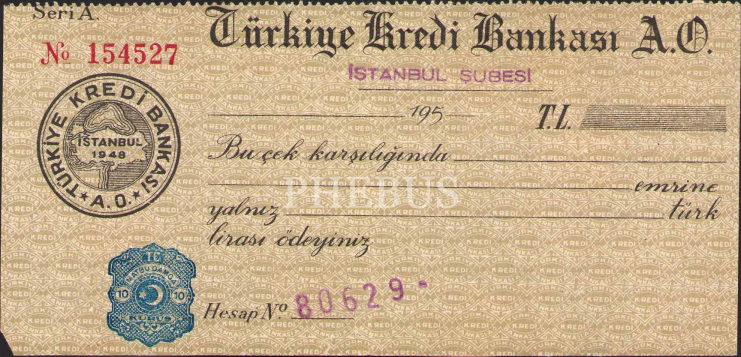 Türkiye Kredi Bankası boş çek kağıdı, 7x15 cm