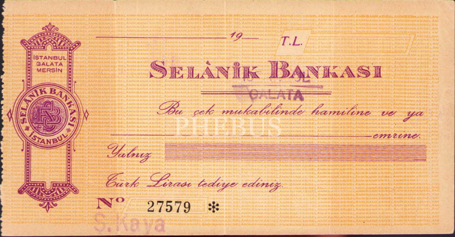 Selanik Bankası boş çek kağıdı, 8x15 cm