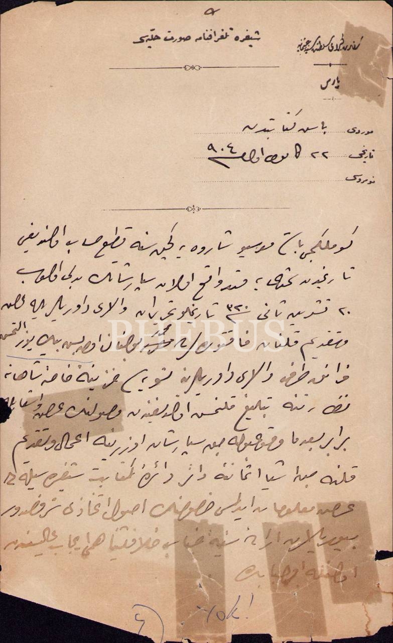 Osmanlıca Sefâret-i Kübrâ Saltanat-ı Seniyye-i Osmaniyye-Paris antetli, bir sipariş bedeline dair evrak, 1904, 15x25 cm