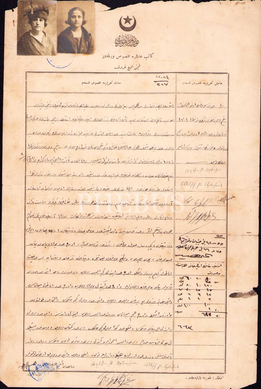 Osmanlıca fotoğraflı ve noter onaylı hibe senedi, 1343, 25x37 cm, yıpranmış haliyle