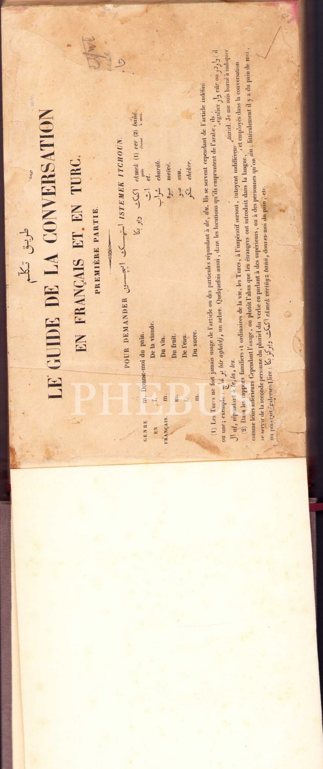Osmanlıca-Fransızca Tarîku Tekellüm-Le Guide De La Conversation [Türkçe-Fransızca Konuşma Rehberi], 248 s., 15x24 cm, bazı sayfaları yıpranmış haliyle