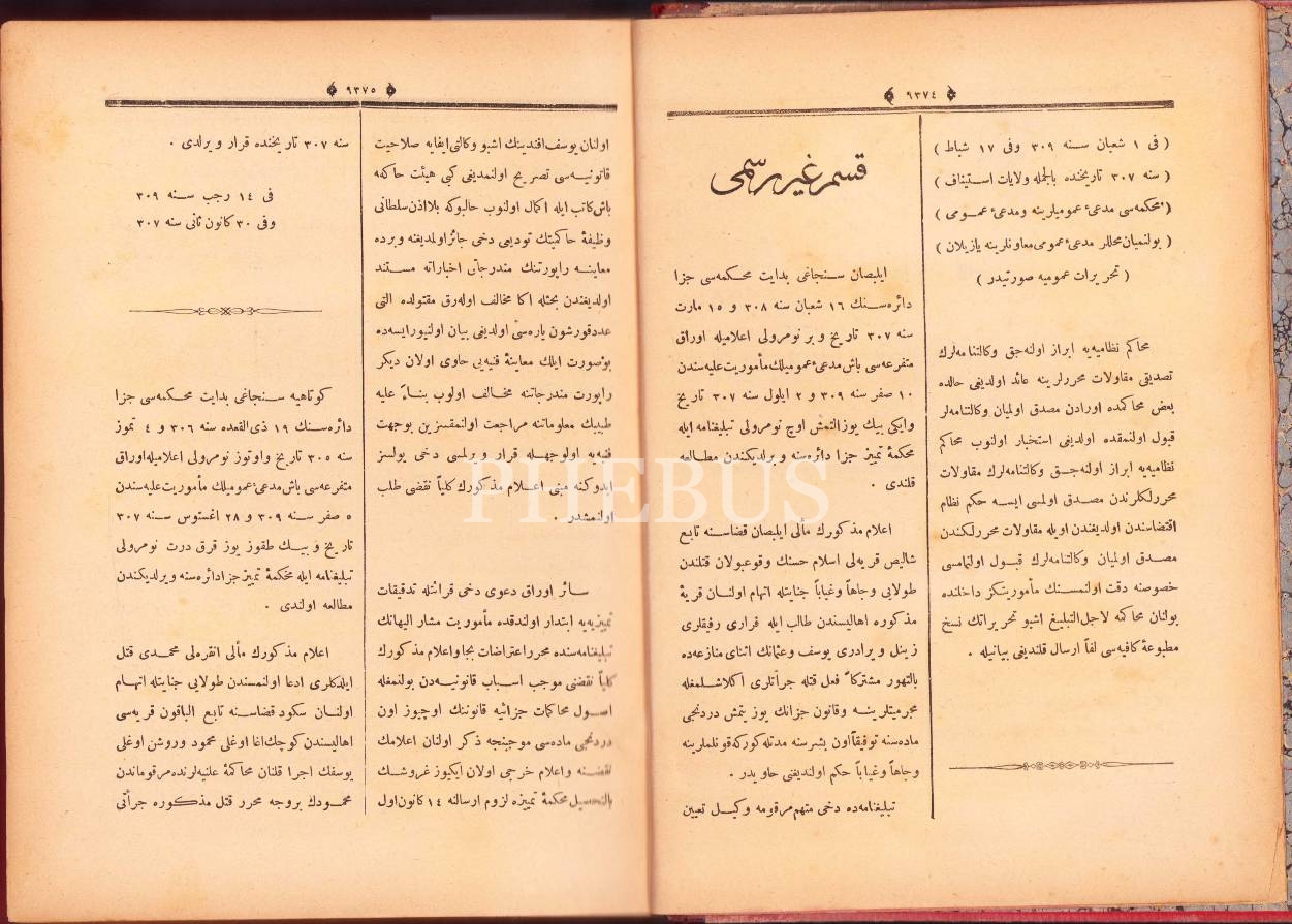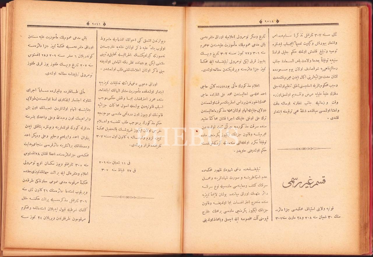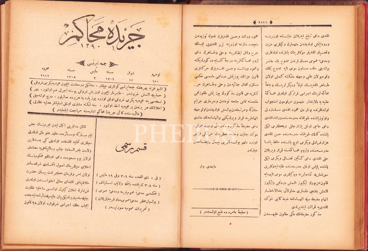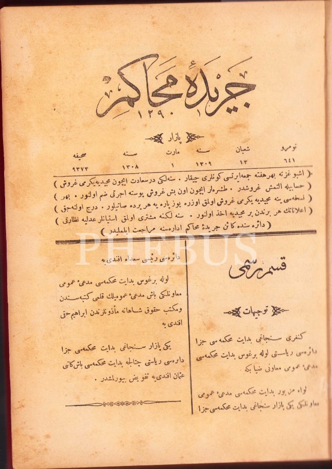 Osmanlıca Cerîde-i Mehâkim [641-692 arası sayılar], 1308, 18x26 cm, cildi yıpranmış haliyle
