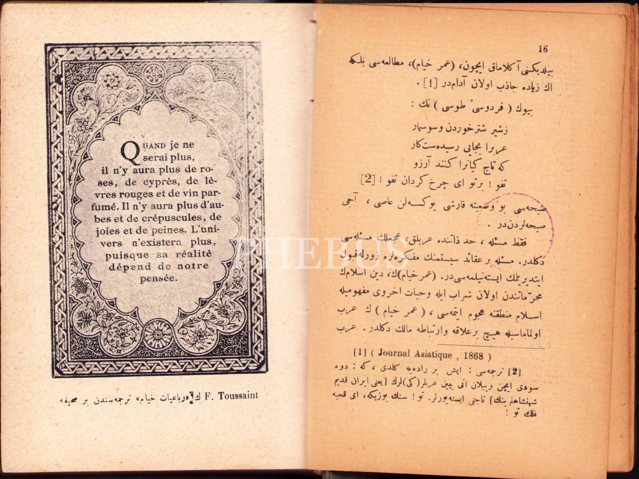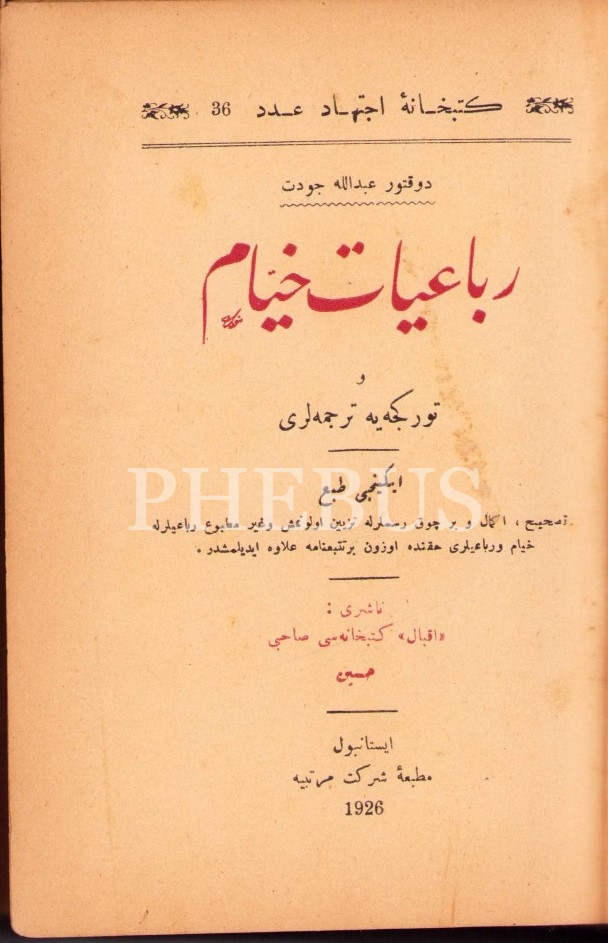 Osmanlıca Rubâiyyât-ı Hayyam ve Türkçeye Tercümeleri, Abdullah Cevdet, Şirket-i Mürettibiye Matbaası, İstanbul 1926, 453 s., 12x18 cm