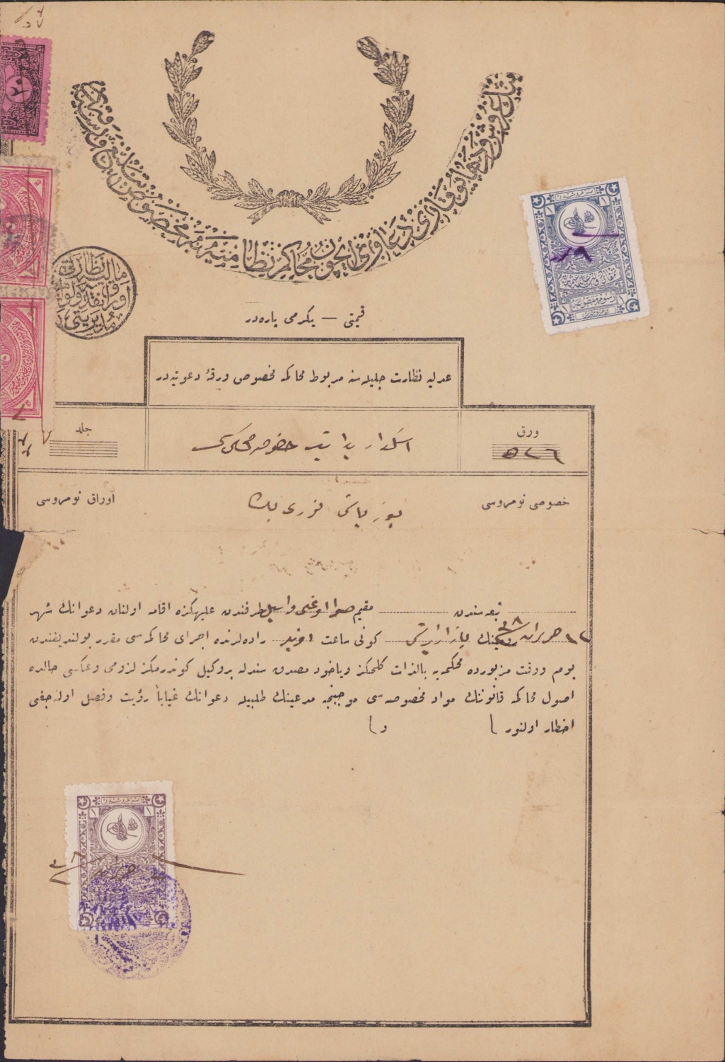 Osmanlı Üsküdar Hususi İdari Mahkemesi dava çağrısı, pullu damgalı, 1338 tarihli, 18x27cm