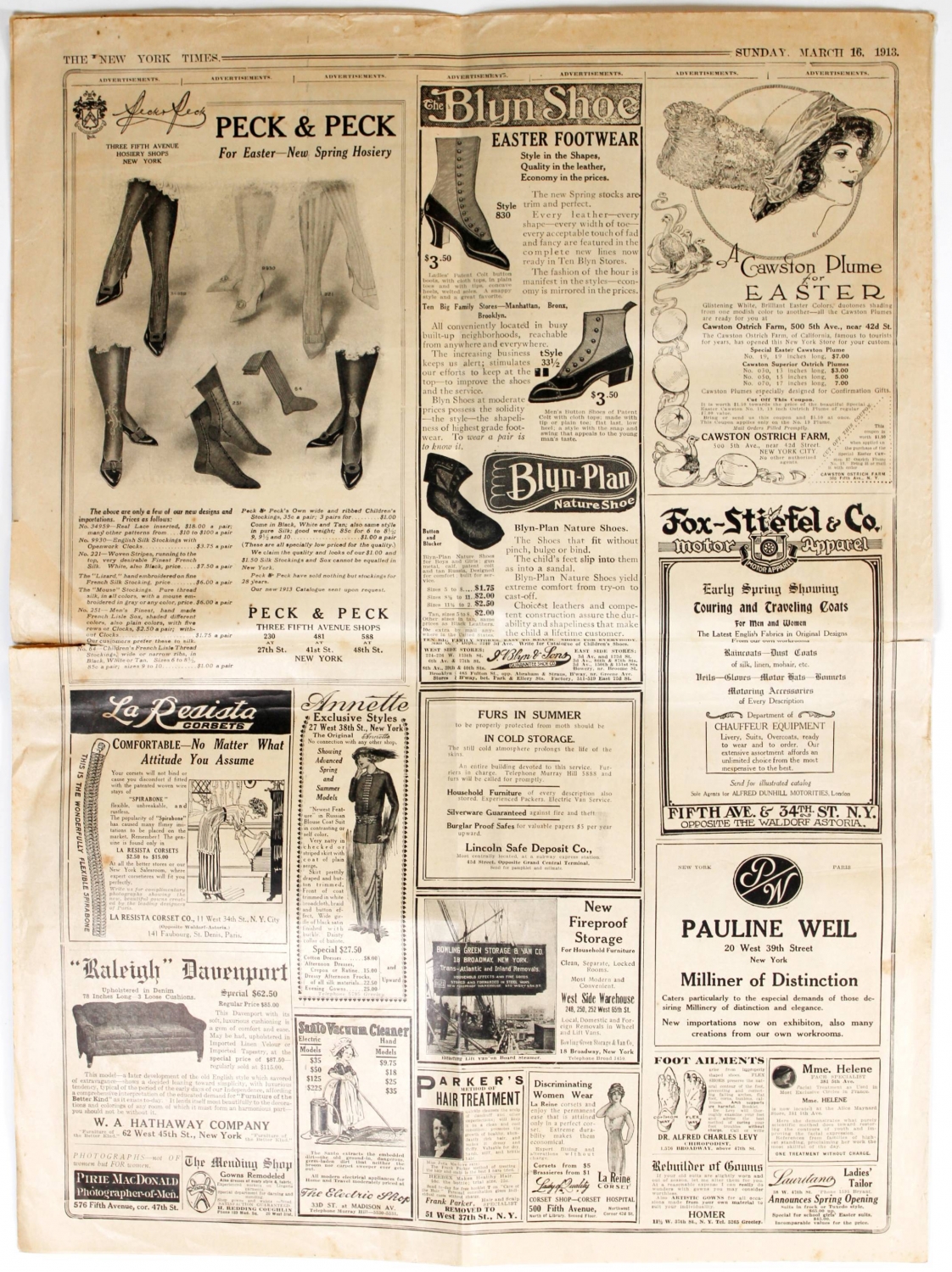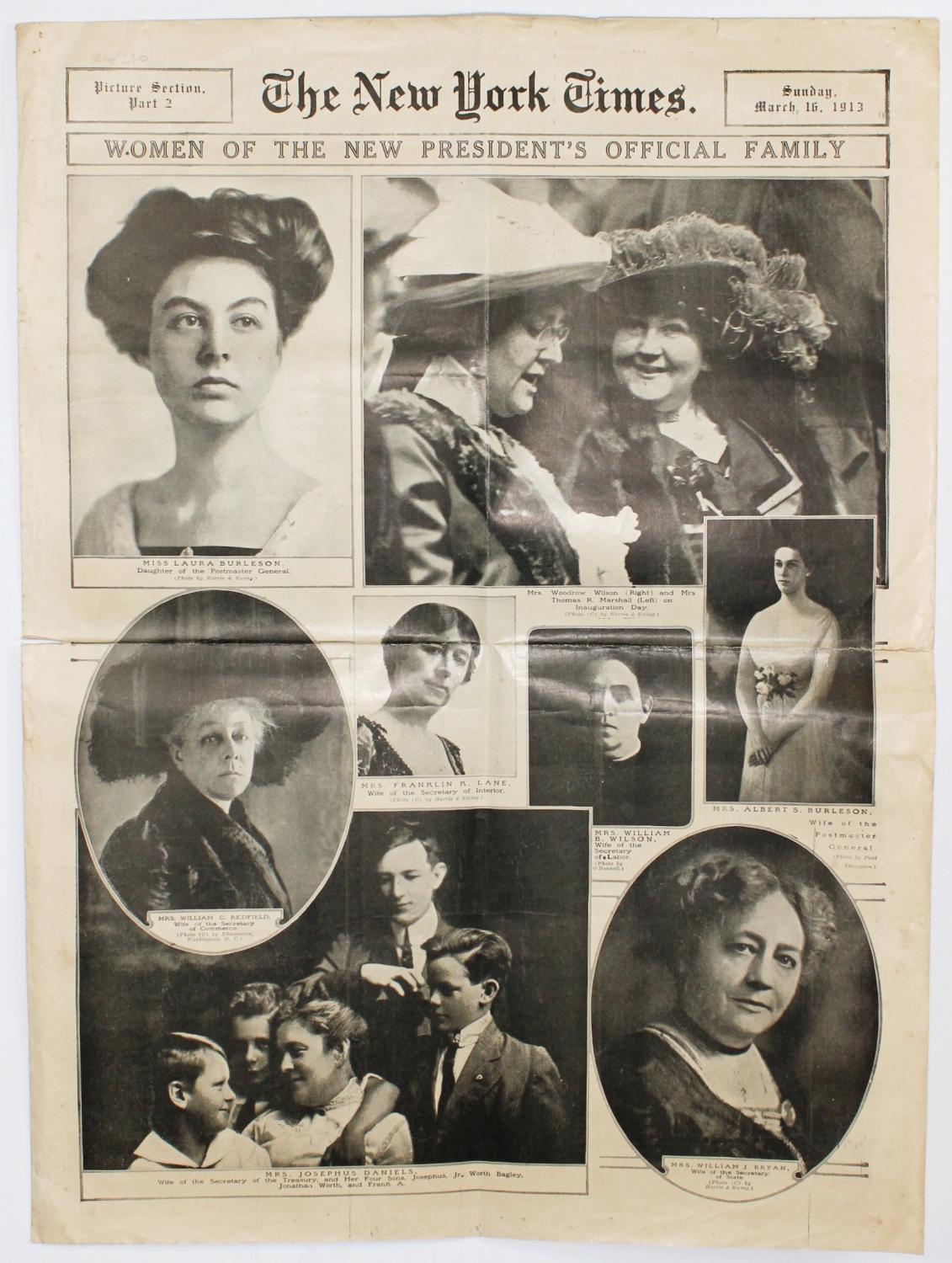 The New York Times gazetesi, 16 Mart 1913 tarihli, ABD Başkanı Woodrow Wilson'ın eşi manşetli, 4 sayfa, bol reklamlı, 42,5x60cm