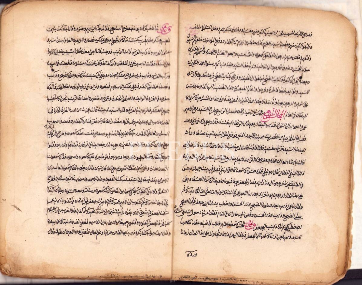 Arapça El Yazması İslam Tarihi Kitabı, 18x25 cm, baştan ve sondan eksik, sayfaları köşeden yırtılmış, iç sırtı ayrık haliyle