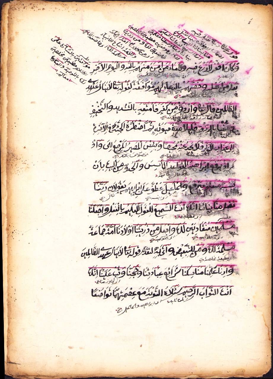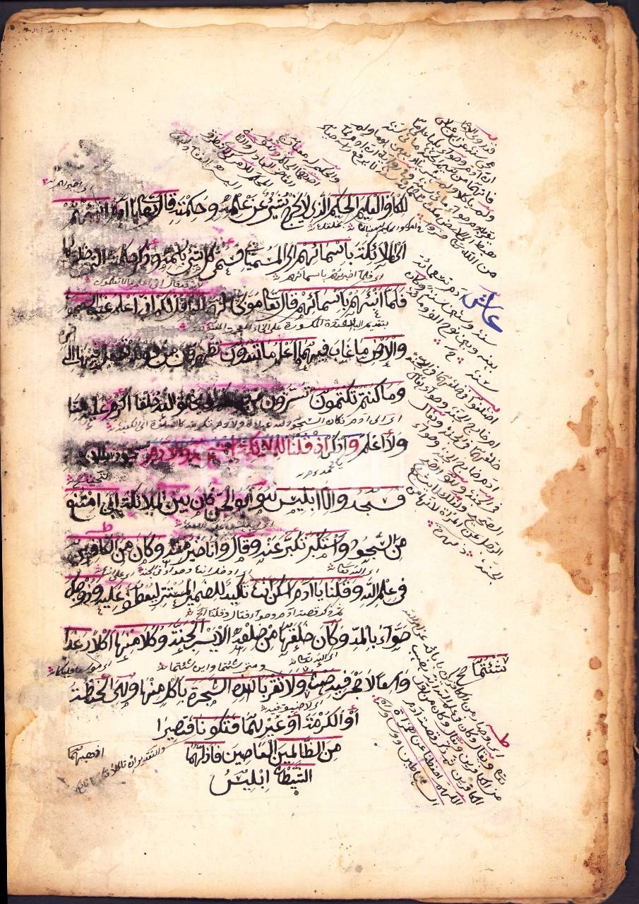 El Yazması Arapça Kur'ân-ı Kerîm Tefsiri, 114 s., 29x40 cm, sondan eksik, yıpranmış ve sayfalar dağınık haliyle
